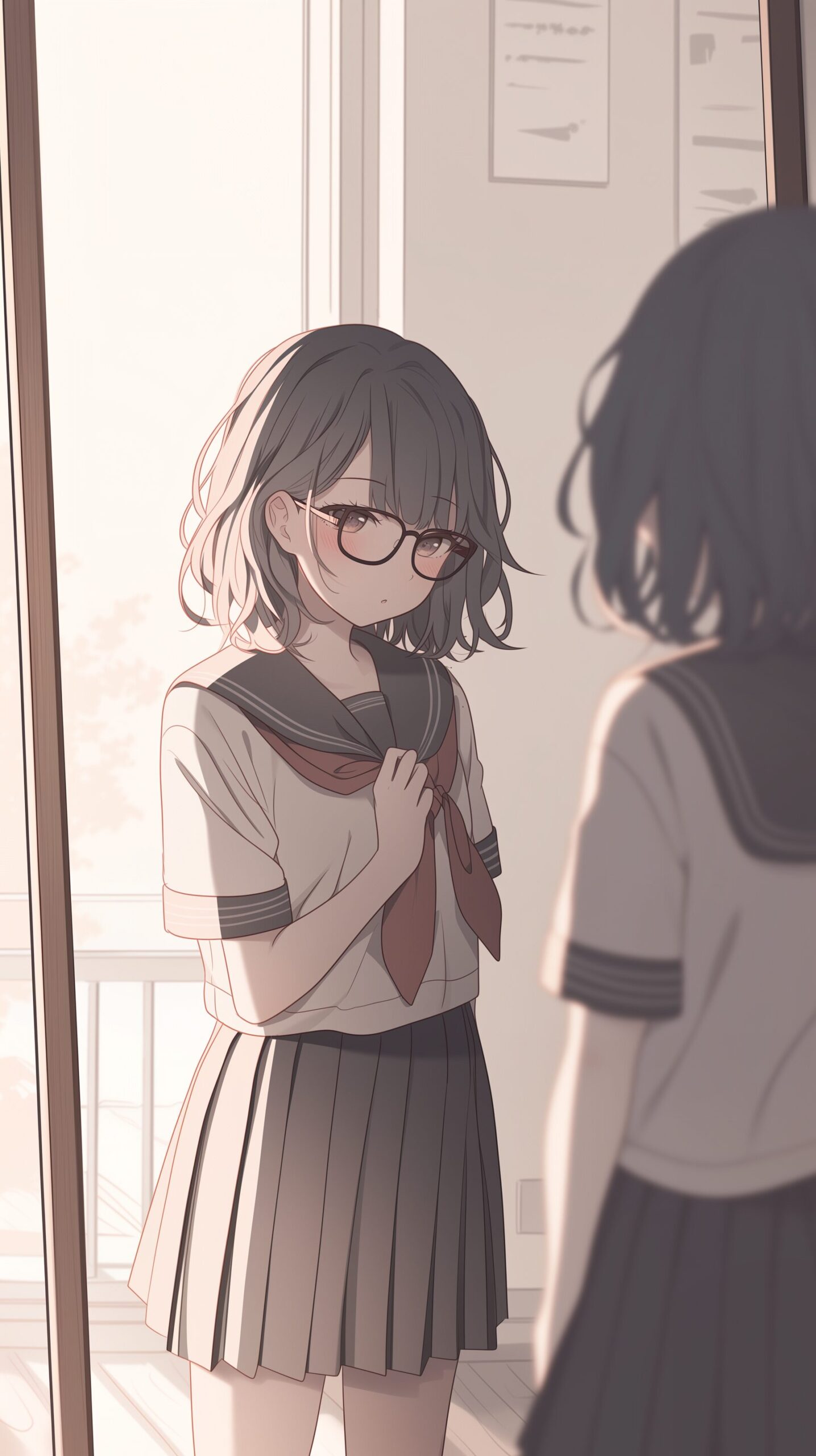 検索タグ:イラスト、ファッション、キャラクター、アニメ、漫画、マンガ、若い、人物、顔、美しい、綺麗、きれい、キレイ、アート、お洒落、挿絵、AI生成画像、インスタ、Instagram、summer、fashion、サムネイル、アイキャッチ、コピースペース、壁紙、ロック画面、待ち受け画像、wallpaper、ロック画面、女性、女子高生、JK、かわいい、可愛い、カワイイ、女、女の人、黒髪、夏、サマー、黒、橘 柚、たちばな ゆず、Tachibana Yuzu、ブラック、眼鏡女子、めがね、メガネ、ボブヘア、ショートヘア