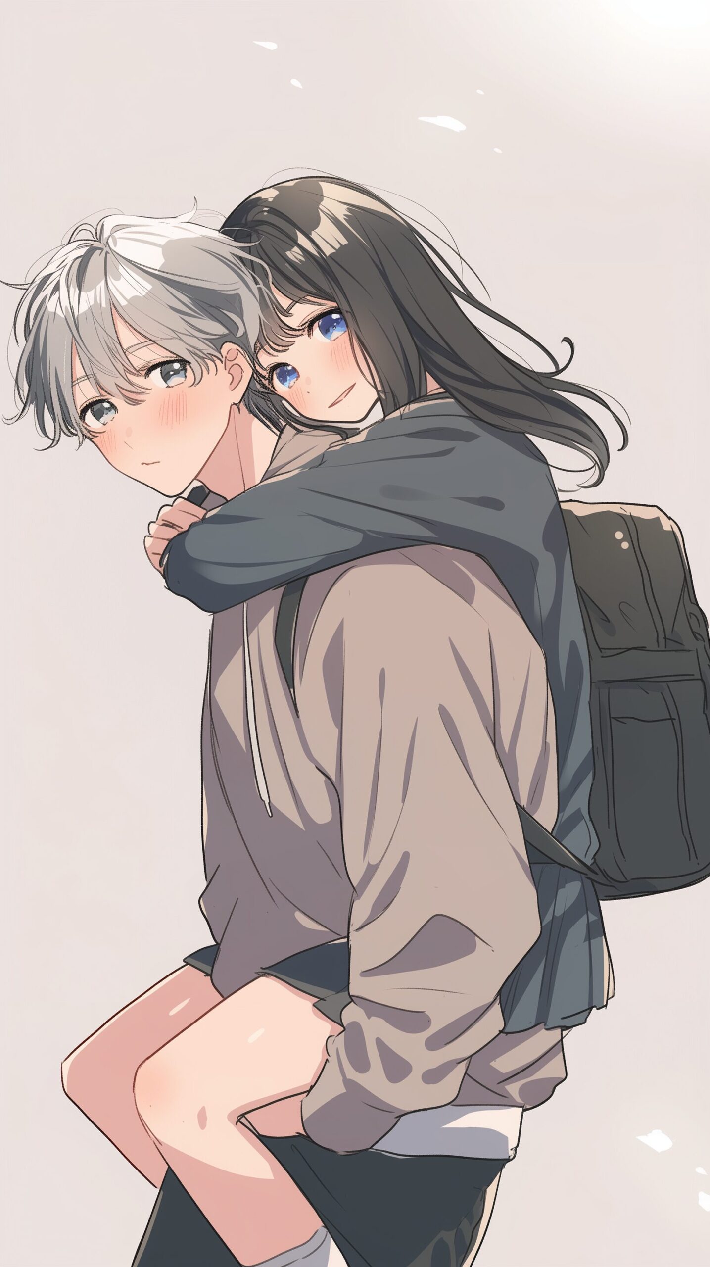 【スマホ壁紙】おんぶカップルイラスト/ペア画・フリー素材03
