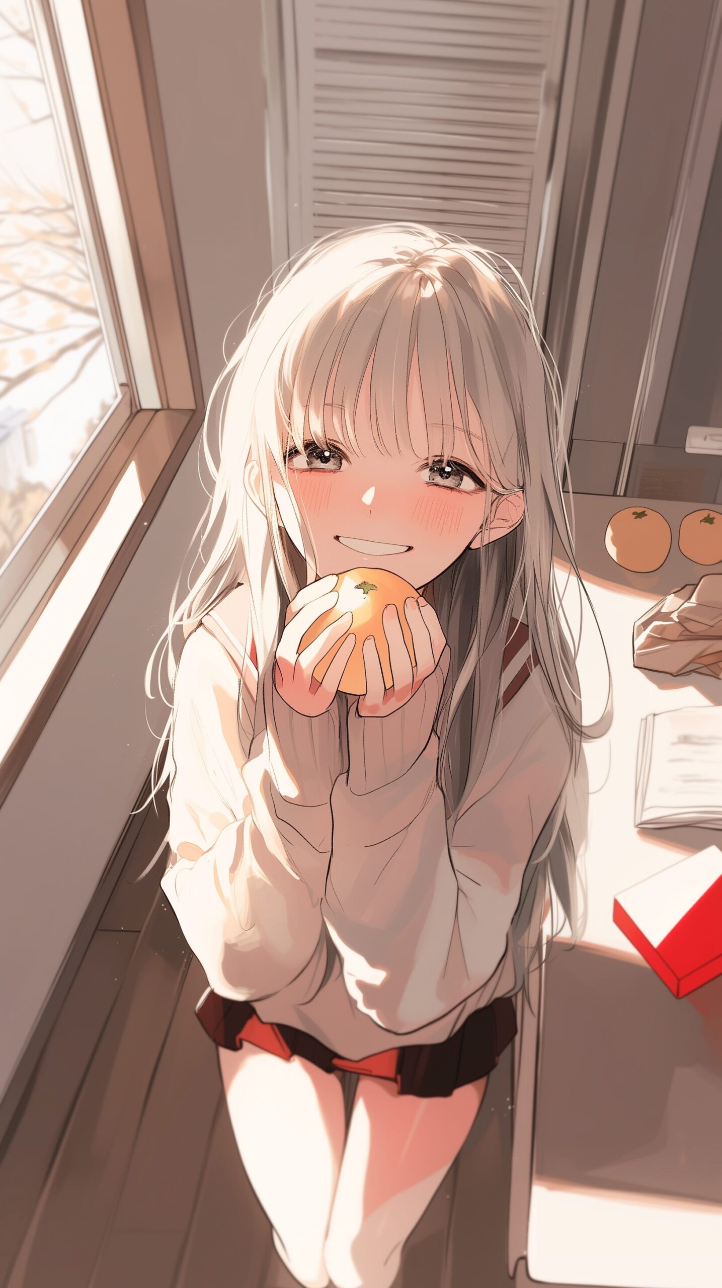 検索タグ:イラスト、ファッション、キャラクター、女性、女、女の子、女子、女の人、アニメ、漫画、マンガ、美人、美女、若い、かわいい、可愛い、カワイイ、人物、顔、美しい、綺麗、きれい、キレイ、アート、お洒落、女子高生、JK、挿絵、AI生成画像、インスタ、Instagram、summer、fashion、サムネイル、アイキャッチ、コピースペース、壁紙、待ち受け画像、wallpaper、ロック画面、部屋、笑顔、銀髪、シルバーヘア、みかん、ミカン、蜜柑