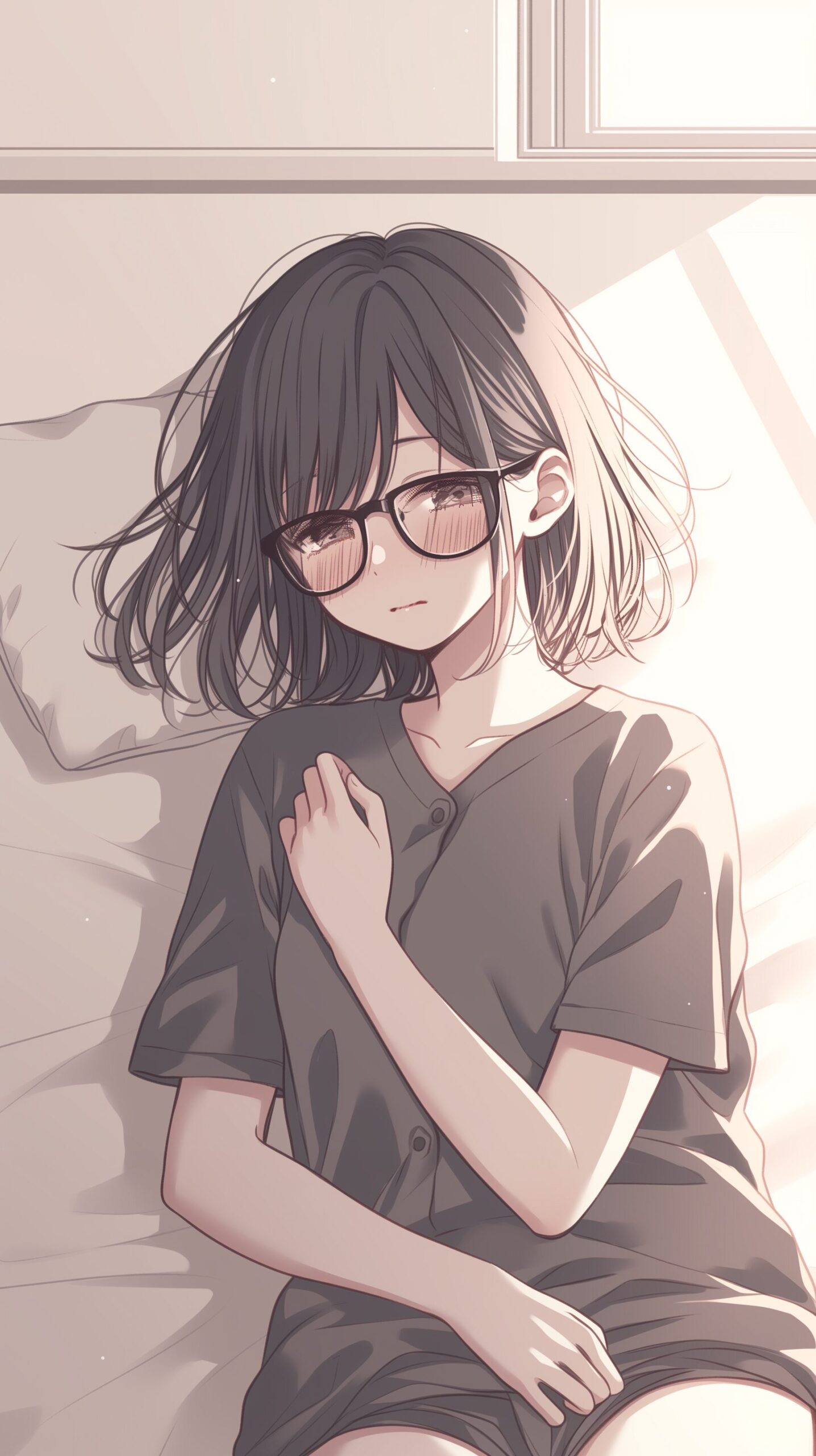 検索タグ:イラスト、ファッション、キャラクター、アニメ、漫画、マンガ、若い、人物、顔、美しい、綺麗、きれい、キレイ、アート、お洒落、挿絵、AI生成画像、インスタ、Instagram、summer、fashion、サムネイル、アイキャッチ、コピースペース、壁紙、ロック画面、待ち受け画像、wallpaper、ロック画面、女性、女子高生、JK、かわいい、可愛い、カワイイ、女、女の人、黒髪、夏、サマー、黒、橘 柚、たちばな ゆず、Tachibana Yuzu、ブラック、眼鏡女子、めがね、メガネ、ボブヘア、ショートヘア、パジャマ、寝巻き