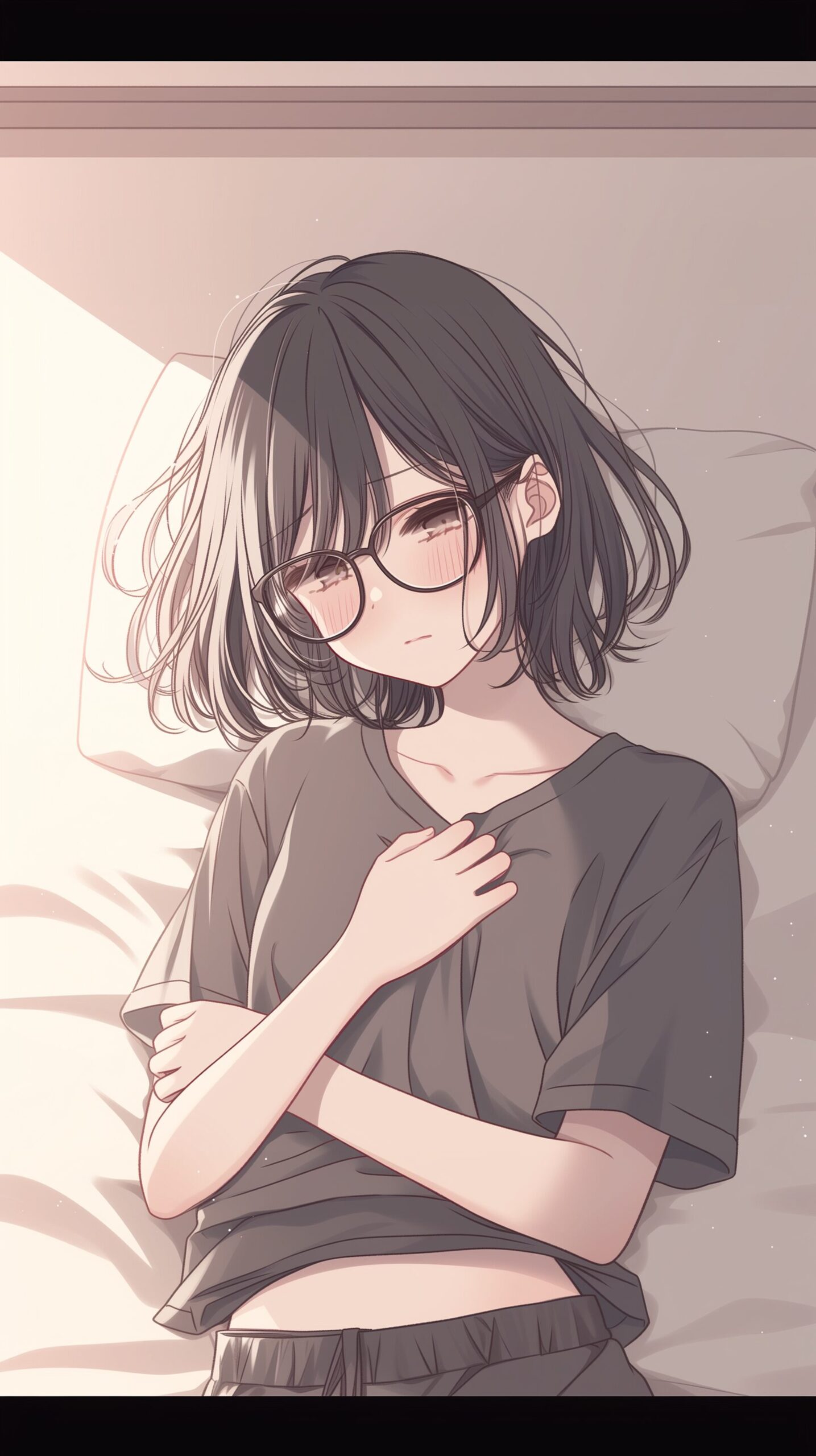 検索タグ:イラスト、ファッション、キャラクター、アニメ、漫画、マンガ、若い、人物、顔、美しい、綺麗、きれい、キレイ、アート、お洒落、挿絵、AI生成画像、インスタ、Instagram、summer、fashion、サムネイル、アイキャッチ、コピースペース、壁紙、ロック画面、待ち受け画像、wallpaper、ロック画面、女性、女子高生、JK、かわいい、可愛い、カワイイ、女、女の人、黒髪、夏、サマー、黒、橘 柚、たちばな ゆず、Tachibana Yuzu、ブラック、眼鏡女子、めがね、メガネ、ボブヘア、ショートヘア、パジャマ、寝巻き