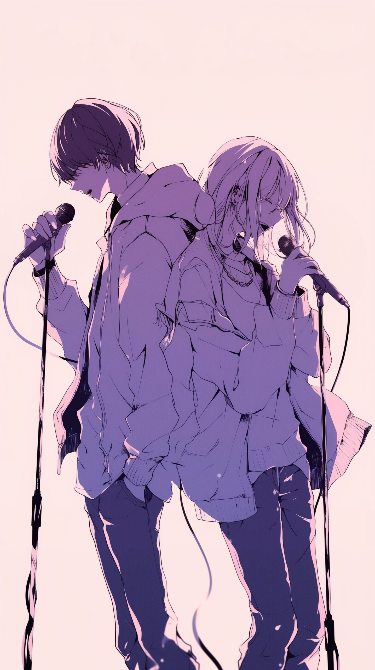 【スマホ壁紙】歌うカップルアーティストのイラスト・フリー素材