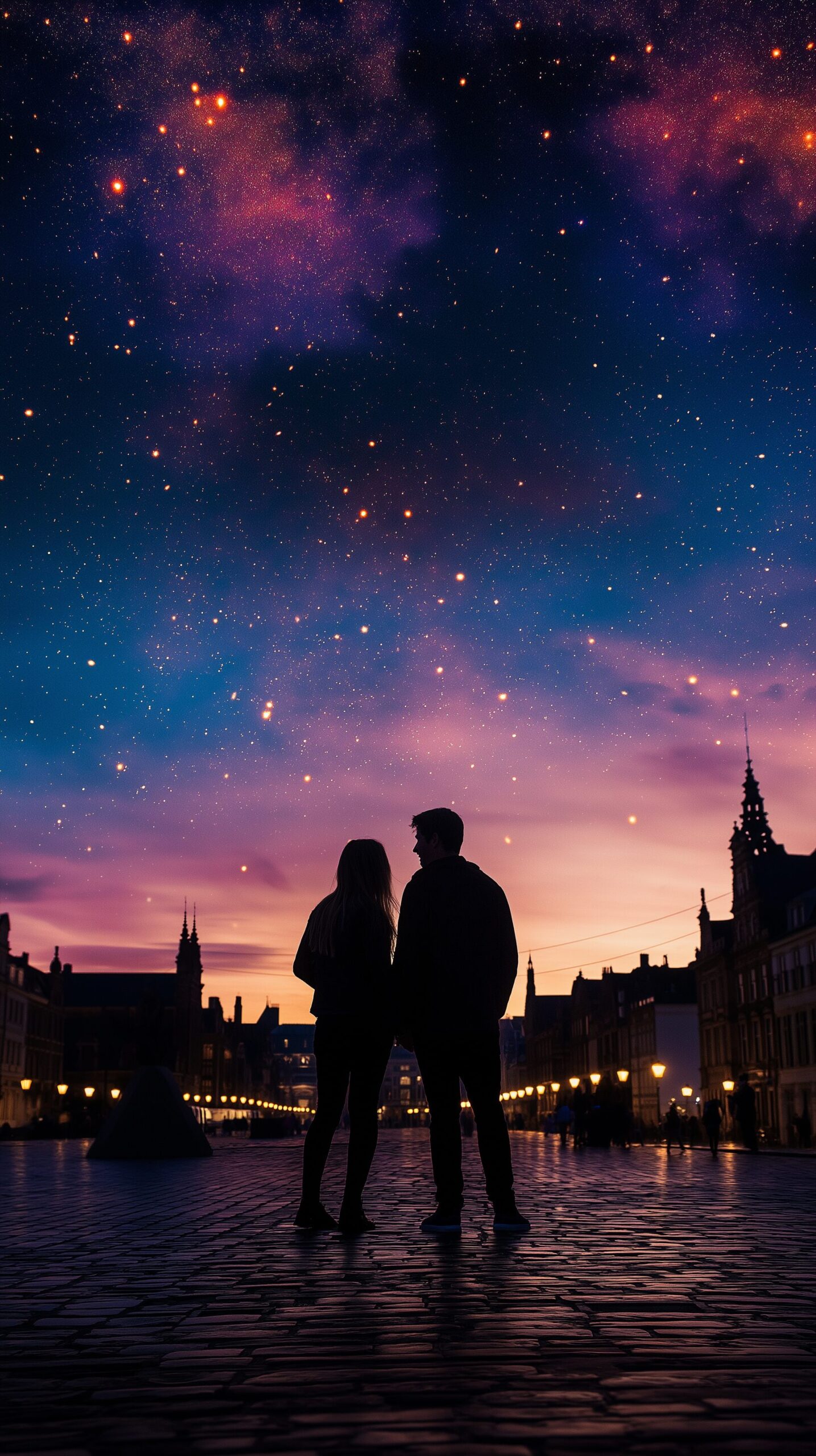 【スマホ壁紙】星空を眺めるカップルの後ろ姿・フリー素材03