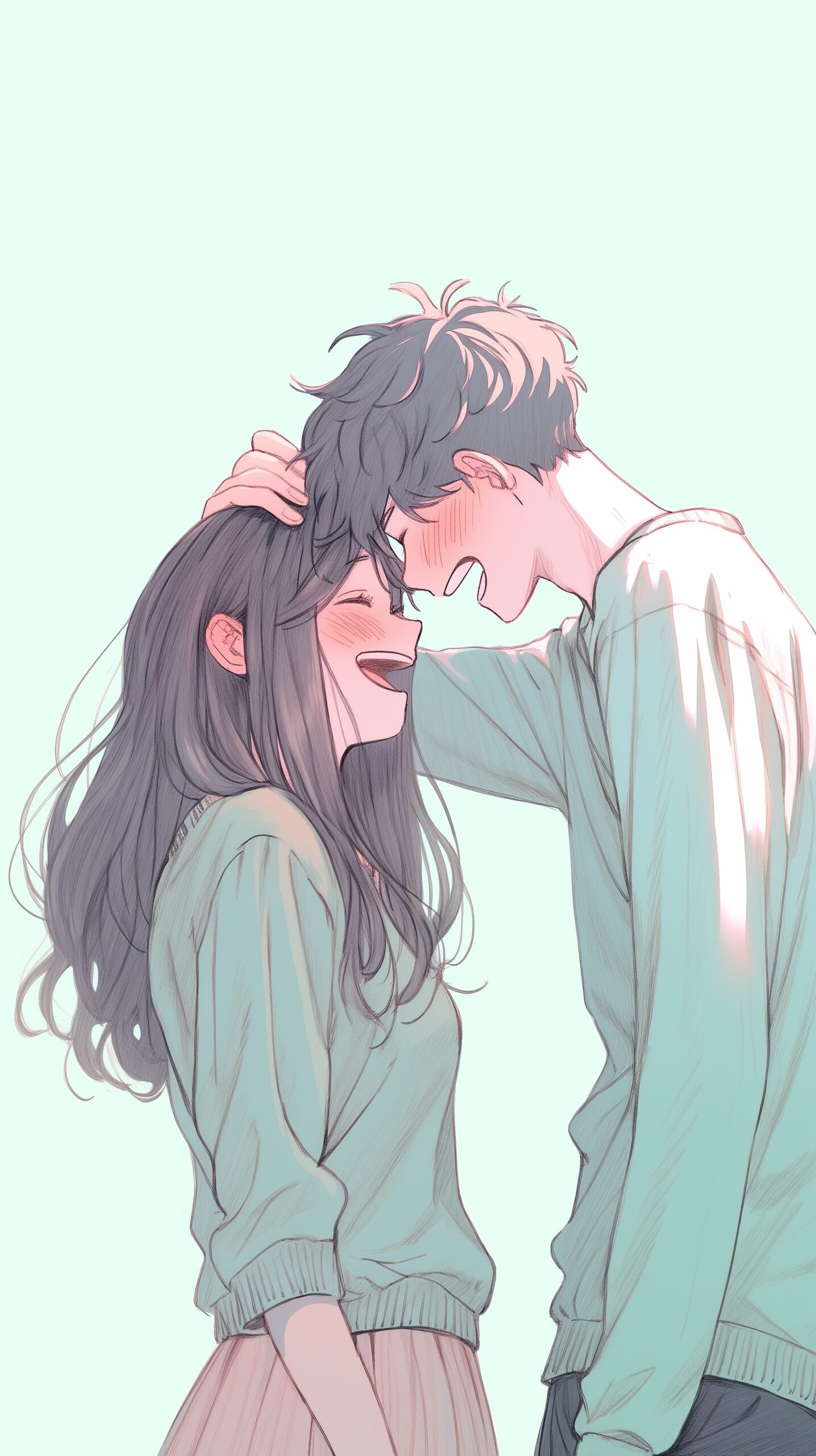 【スマホ壁紙】見つめ合う笑顔のカップルイラスト・フリー素材04