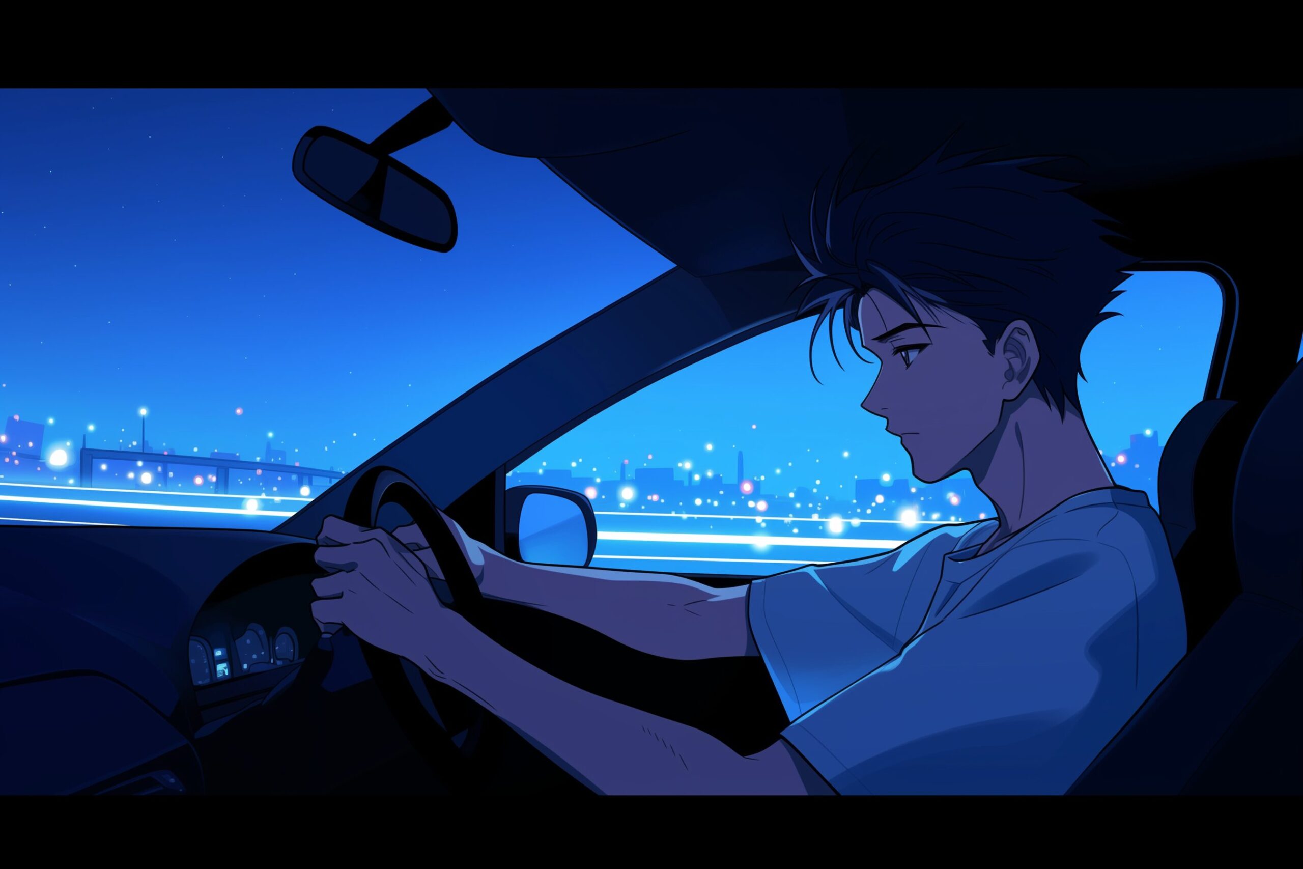 検索タグ:イラスト、ファッション、キャラクター、男、男性、アニメ、漫画、マンガ、美人、美女、若い、クール、かっこいい、人物、顔、美しい、綺麗、きれい、キレイ、アート、お洒落、挿絵、サムネイル、アイキャッチ、コピースペース、横長、ドライブ、運転、車、夜、メンズ、車内