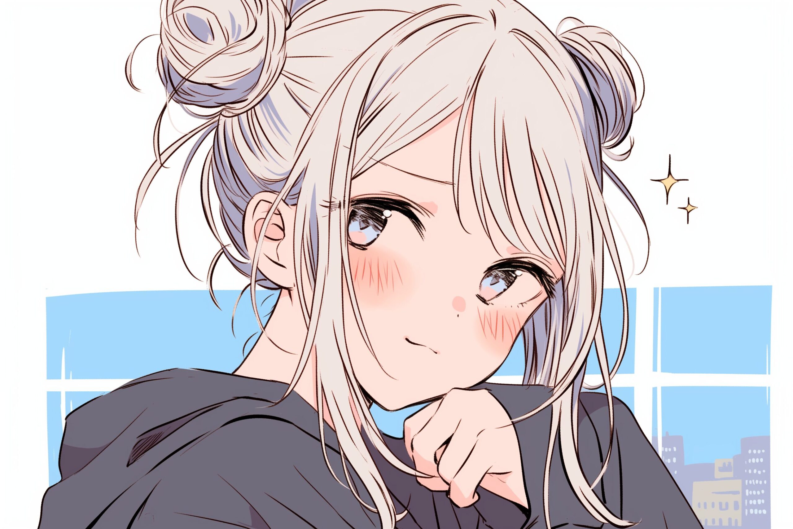 検索タグ:イラスト、ファッション、キャラクター、女性、女、女の子、女子、女の人、アニメ、漫画、マンガ、美人、美女、若い、かわいい、可愛い、カワイイ、人物、顔、美しい、綺麗、きれい、キレイ、アート、お洒落、女子高生、JK、挿絵、夏、春、パステルカラー、インスタ、Instagram、fashion、サムネイル、アイキャッチ、コピースペース、横長、銀髪、お団子ヘア、笑顔、シルバーヘア