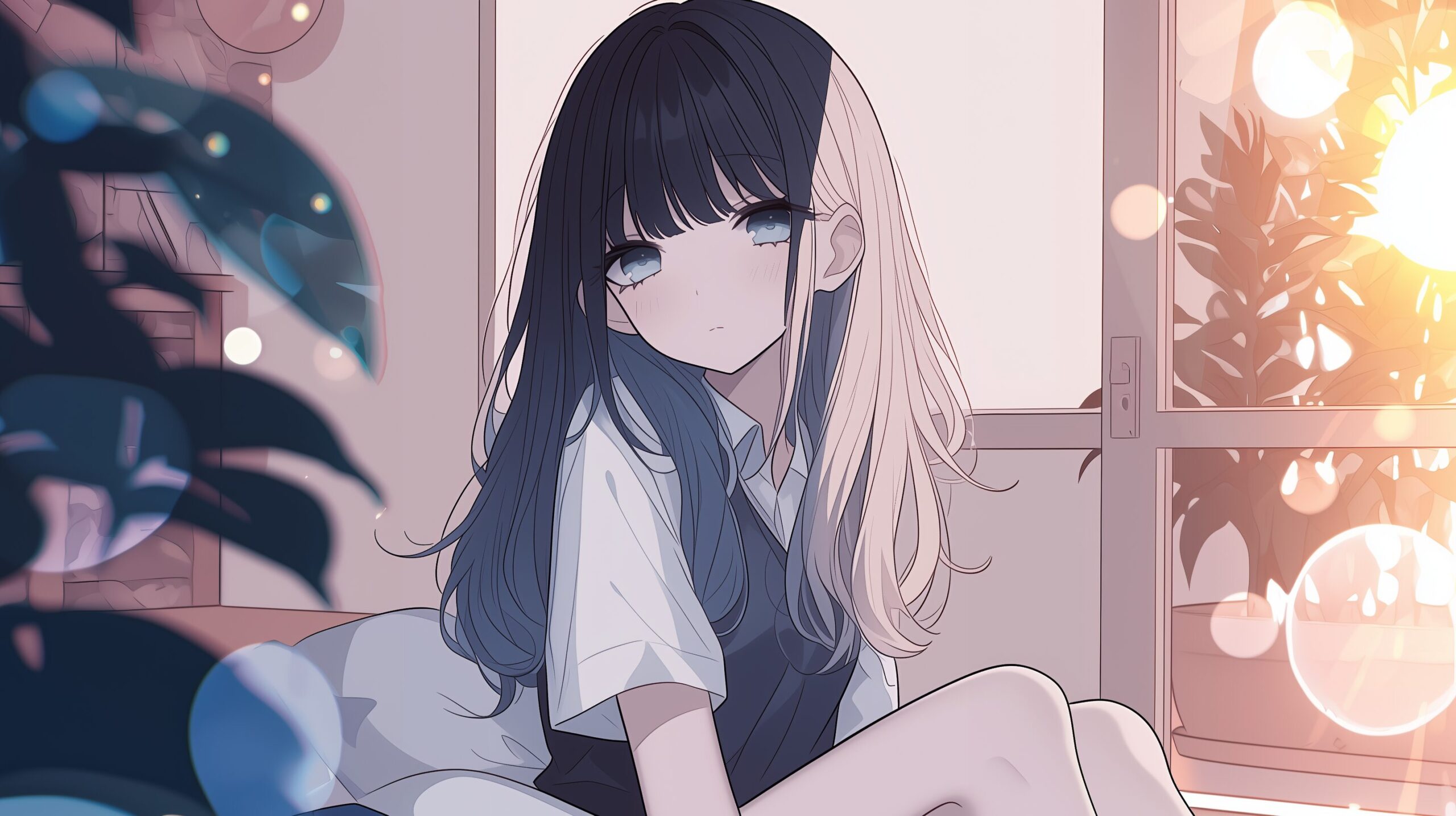 検索タグ:イラスト、ファッション、キャラクター、女性、女、女の子、女子、女の人、アニメ、漫画、マンガ、美人、美女、若い、かわいい、可愛い、カワイイ、人物、顔、美しい、綺麗、きれい、キレイ、アート、お洒落、挿絵、インスタ、Instagram、AI生成画像、fashion、コピースペース、学生、高校生、月森 澪、つきもり みお、無表情、青髪
