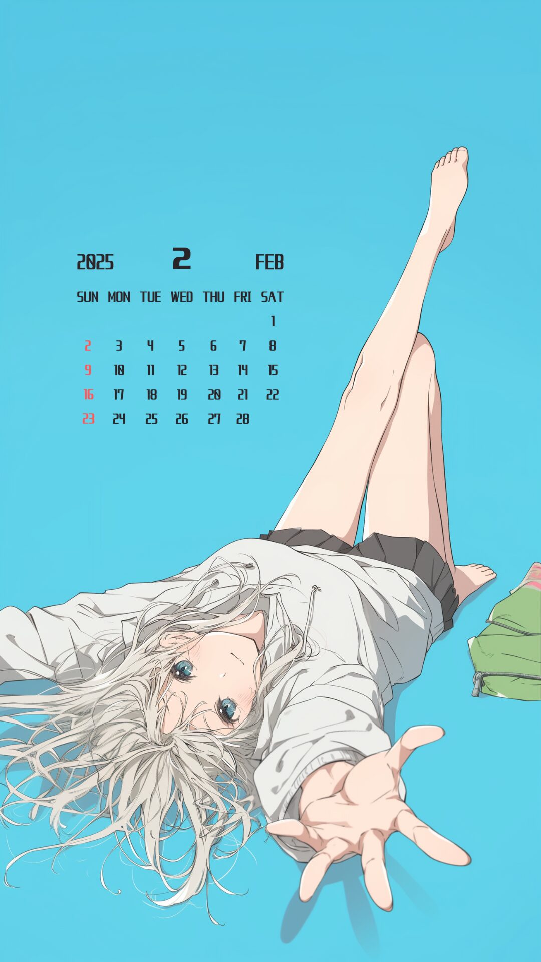 【2月カレンダー】銀髪寝転び女子01