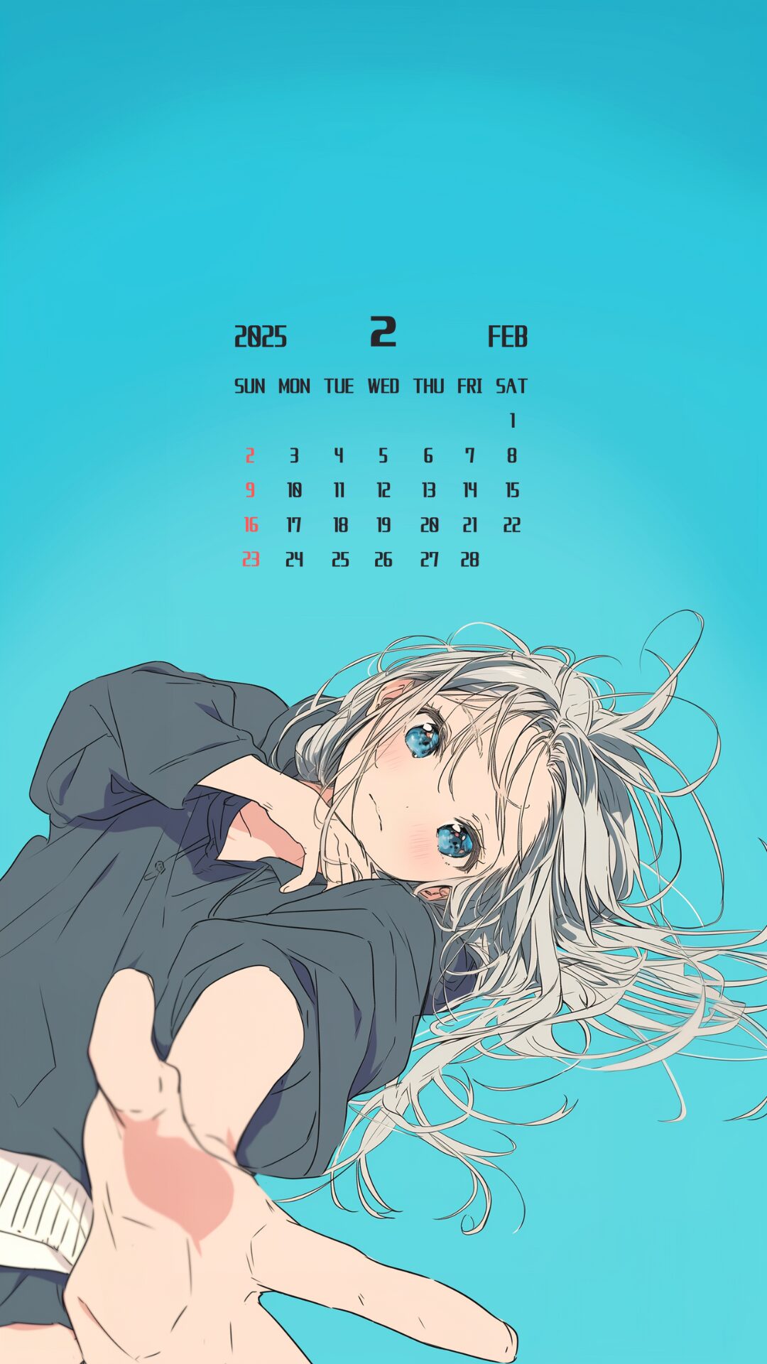 【2月カレンダー】銀髪寝転び女子02