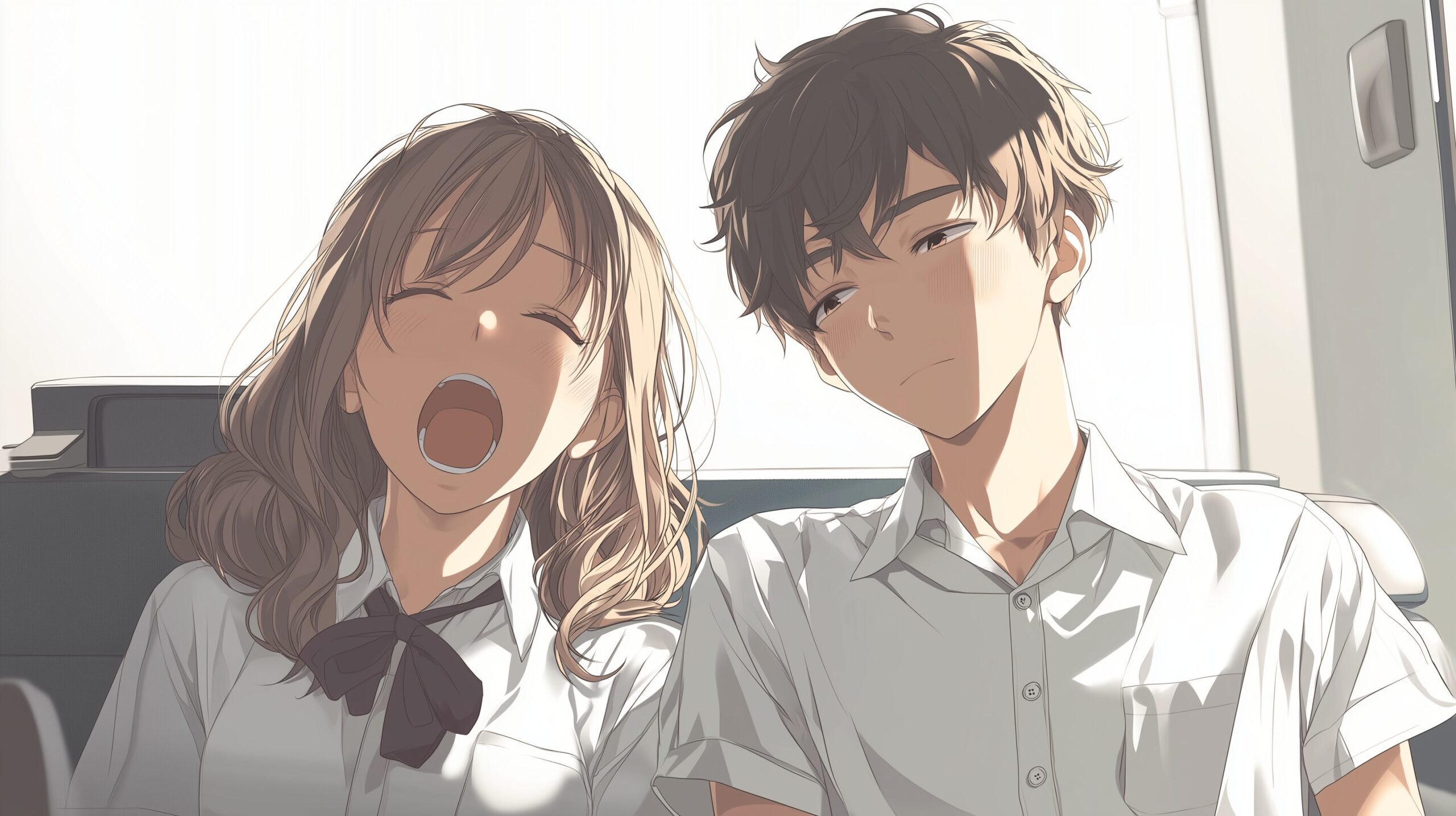 検索タグ:イラスト、ファッション、キャラクター、女性、女、女の子、女子、女の人、アニメ、漫画、マンガ、美人、美女、若い、かわいい、可愛い、カワイイ、人物、顔、美しい、綺麗、きれい、キレイ、アート、お洒落、挿絵、インスタ、Instagram、AI生成画像、fashion、コピースペース、カップル、恋人、男性、男、男の人、恋愛、恋、あくび、通学
