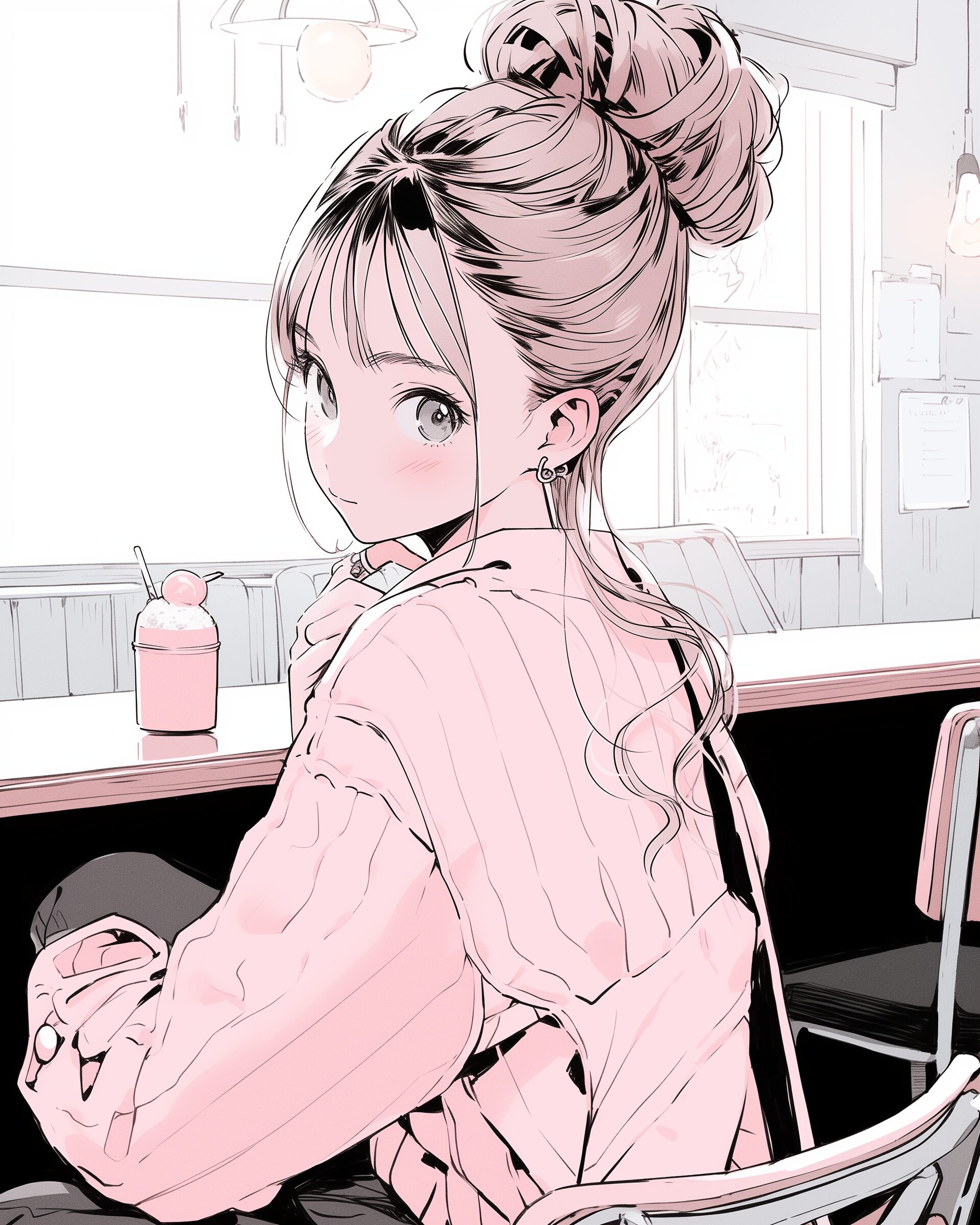 検索タグ:イラスト、ファッション、キャラクター、女性、女、女の子、女子、女の人、アニメ、漫画、マンガ、美人、美女、若い、かわいい、可愛い、カワイイ、人物、顔、美しい、綺麗、きれい、キレイ、アート、お洒落、女子高生、JK、挿絵、夏、春、パステルカラー、春服、インスタ、Instagram、ピンク、pink、お団子ヘア