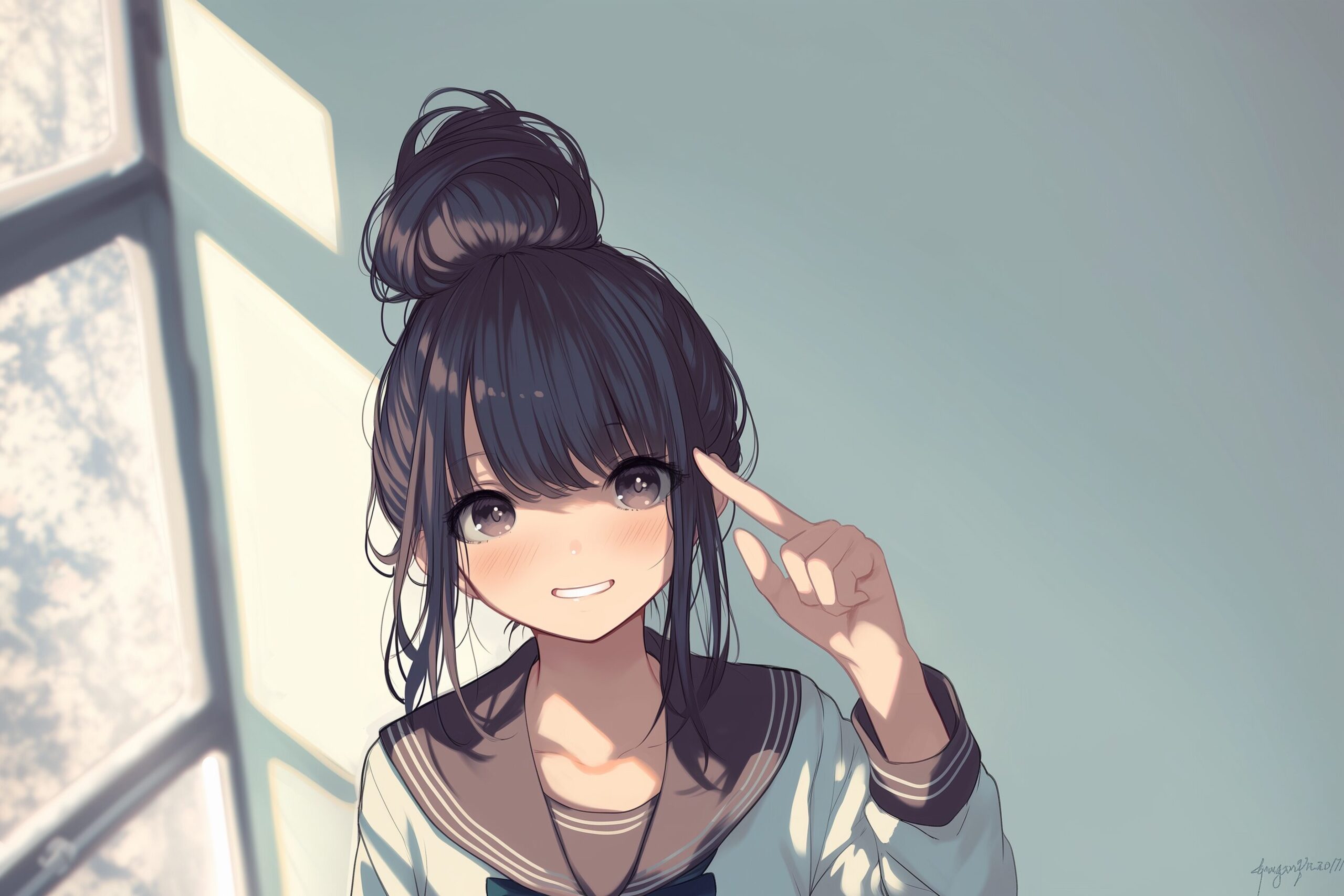 検索タグ:イラスト、キャラクター、女性、女、女の子、女子、女の人、アニメ、漫画、マンガ、美人、美女、若い、かわいい、可愛い、カワイイ、人物、顔、美しい、綺麗、きれい、キレイ、アート、お洒落、挿絵、インスタ、Instagram、AI生成画像、コピースペース、恋愛、恋、片思い、失恋、お団子ヘア、髪型、笑顔、微笑む、微笑み、後ろ姿