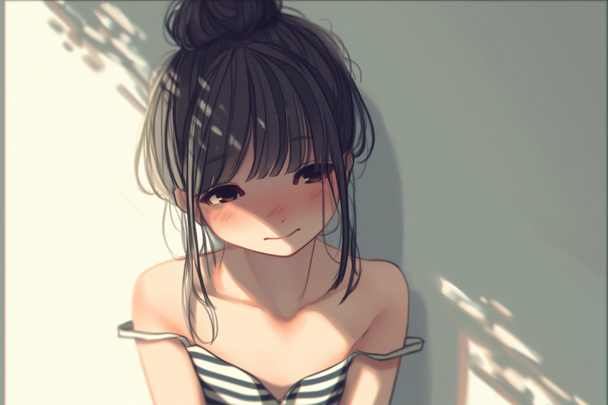 検索タグ:イラスト、キャラクター、女性、女、女の子、女子、女の人、アニメ、漫画、マンガ、美人、美女、若い、かわいい、可愛い、カワイイ、人物、顔、美しい、綺麗、きれい、キレイ、アート、お洒落、挿絵、インスタ、Instagram、AI生成画像、コピースペース、恋愛、恋、片思い、失恋、お団子ヘア、髪型、笑顔、微笑む、微笑み、後ろ姿