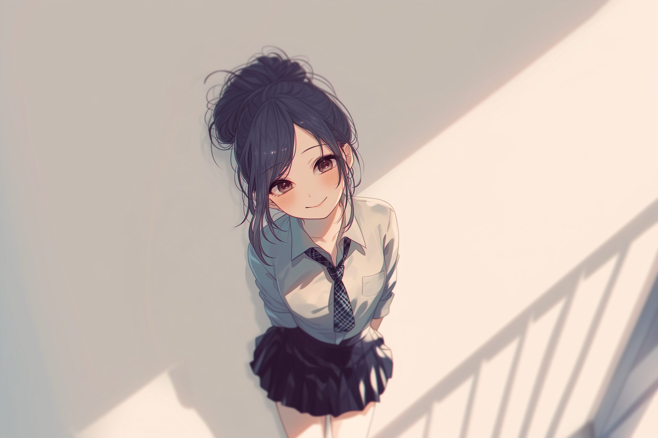 検索タグ:イラスト、キャラクター、女性、女、女の子、女子、女の人、アニメ、漫画、マンガ、美人、美女、若い、かわいい、可愛い、カワイイ、人物、顔、美しい、綺麗、きれい、キレイ、アート、お洒落、挿絵、インスタ、Instagram、AI生成画像、コピースペース、恋愛、恋、片思い、失恋、お団子ヘア、髪型、笑顔、微笑む、微笑み、後ろ姿