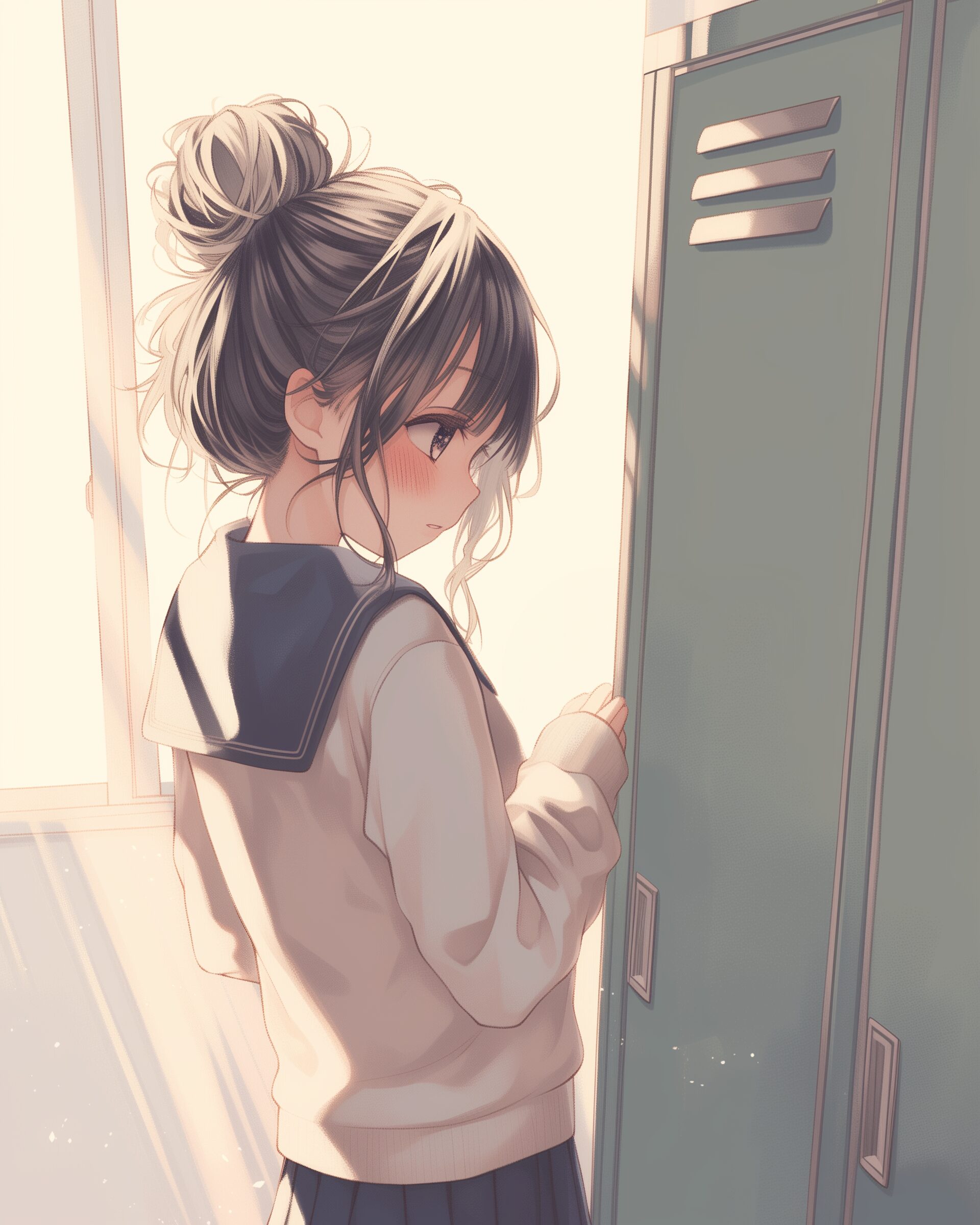 検索タグ:イラスト、キャラクター、女性、女、女の子、女子、女の人、アニメ、漫画、マンガ、美人、美女、若い、かわいい、可愛い、カワイイ、人物、顔、美しい、綺麗、きれい、キレイ、アート、お洒落、挿絵、インスタ、Instagram、AI生成画像、コピースペース、恋愛、恋、片思い、失恋、お団子ヘア、髪型、笑顔、微笑む、微笑み、後ろ姿