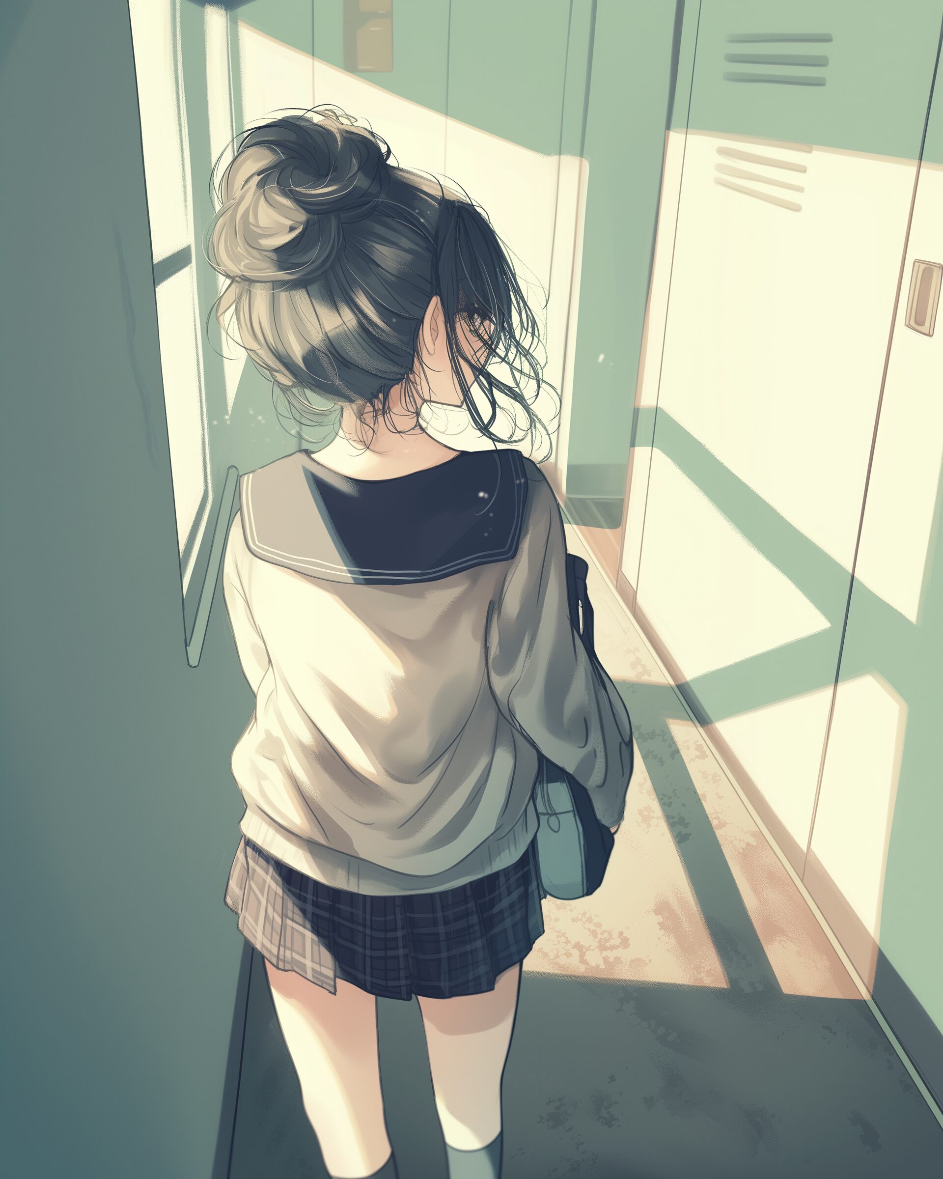 検索タグ:イラスト、キャラクター、女性、女、女の子、女子、女の人、アニメ、漫画、マンガ、美人、美女、若い、かわいい、可愛い、カワイイ、人物、顔、美しい、綺麗、きれい、キレイ、アート、お洒落、挿絵、インスタ、Instagram、AI生成画像、コピースペース、恋愛、恋、片思い、失恋、お団子ヘア、髪型、笑顔、微笑む、微笑み、後ろ姿