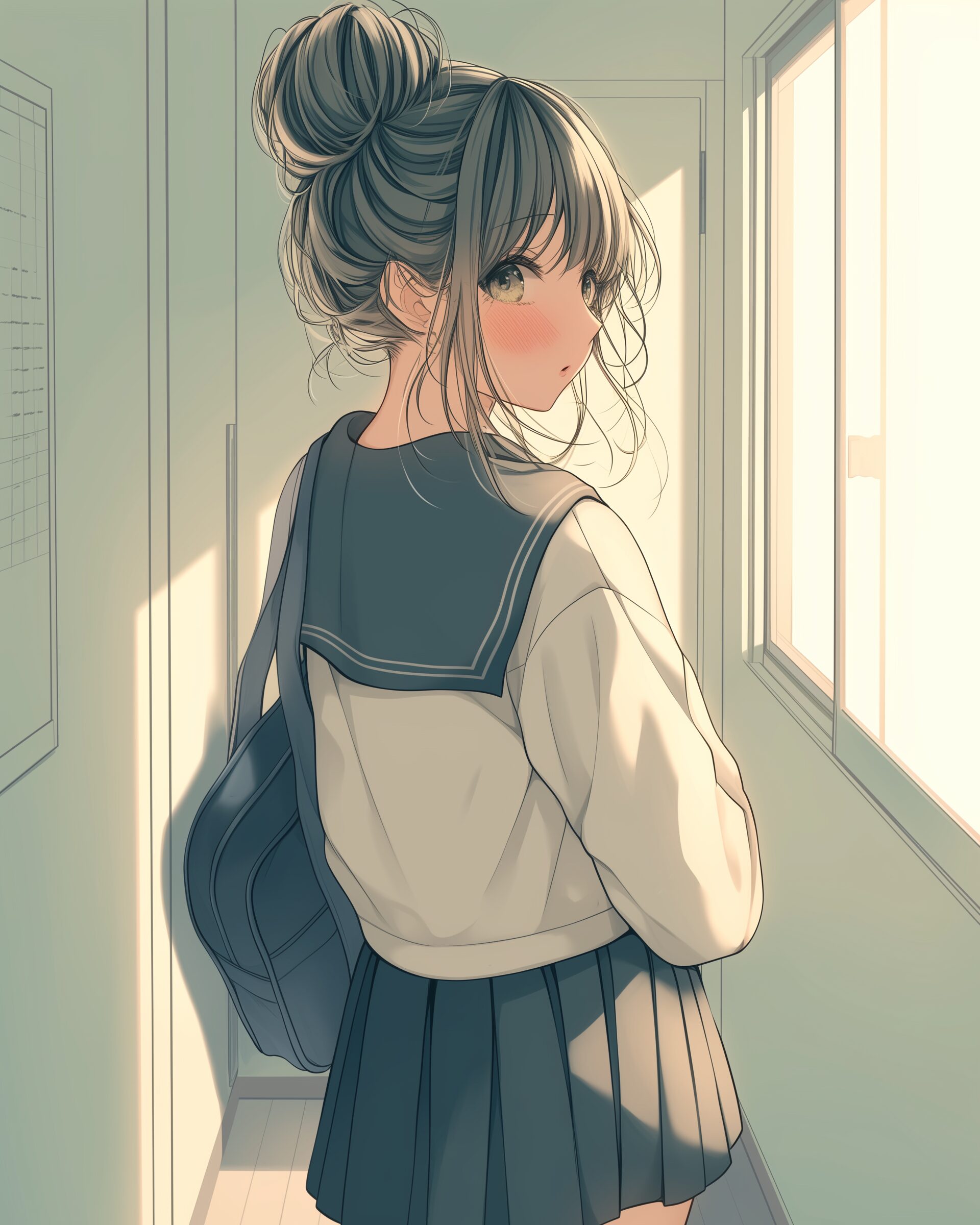 検索タグ:イラスト、キャラクター、女性、女、女の子、女子、女の人、アニメ、漫画、マンガ、美人、美女、若い、かわいい、可愛い、カワイイ、人物、顔、美しい、綺麗、きれい、キレイ、アート、お洒落、挿絵、インスタ、Instagram、AI生成画像、コピースペース、恋愛、恋、片思い、失恋、お団子ヘア、髪型、笑顔、微笑む、微笑み、後ろ姿