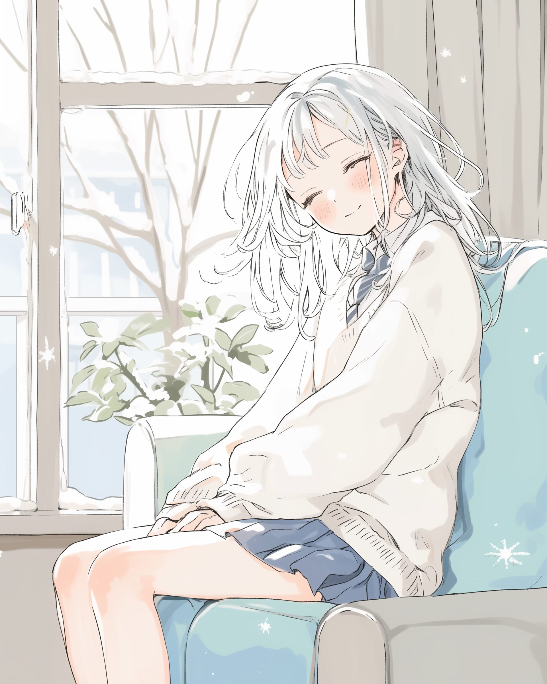 検索タグ:イラスト、ファッション、キャラクター、女性、女、女の子、女子、女の人、アニメ、漫画、マンガ、美人、美女、若い、かわいい、可愛い、カワイイ、人物、顔、美しい、綺麗、きれい、キレイ、アート、お洒落、挿絵、インスタ、Instagram、AI生成画像、fashion、コピースペース、銀髪、ソファ、お昼寝、寝る、眠る、睡眠、ぐっすり