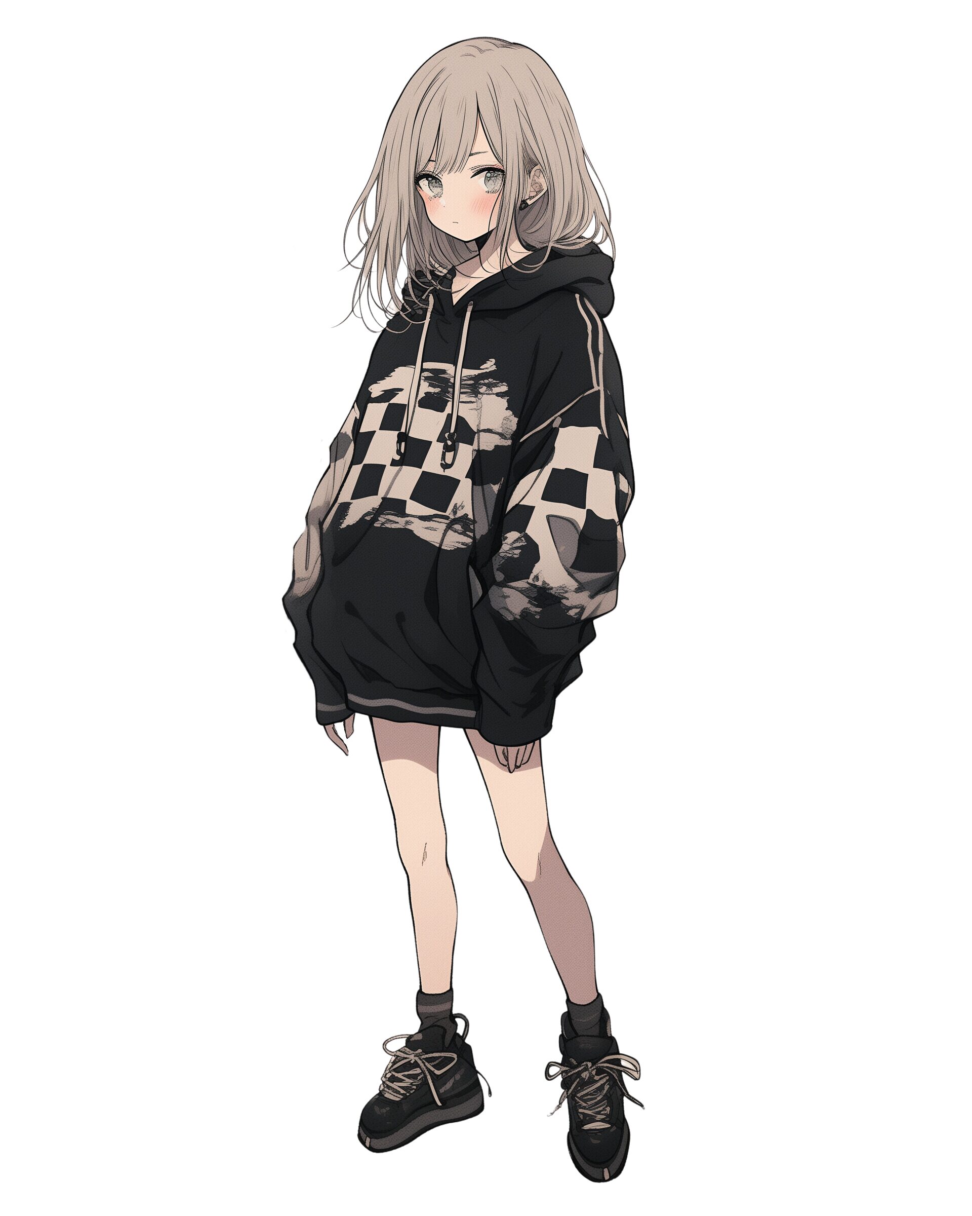 検索タグ:イラスト、ファッション、キャラクター、女性、女、女の子、女子、女の人、アニメ、漫画、マンガ、美人、美女、若い、かわいい、可愛い、カワイイ、人物、顔、美しい、綺麗、きれい、キレイ、アート、お洒落、挿絵、インスタ、Instagram、fashion、コピースペース、おしゃれ、オシャレ、秋、秋服、待ち合わせ、秋冬ファッション、冬服、ブラック、BLACK、黒、パーカー女子、白背景、全身、チェック柄