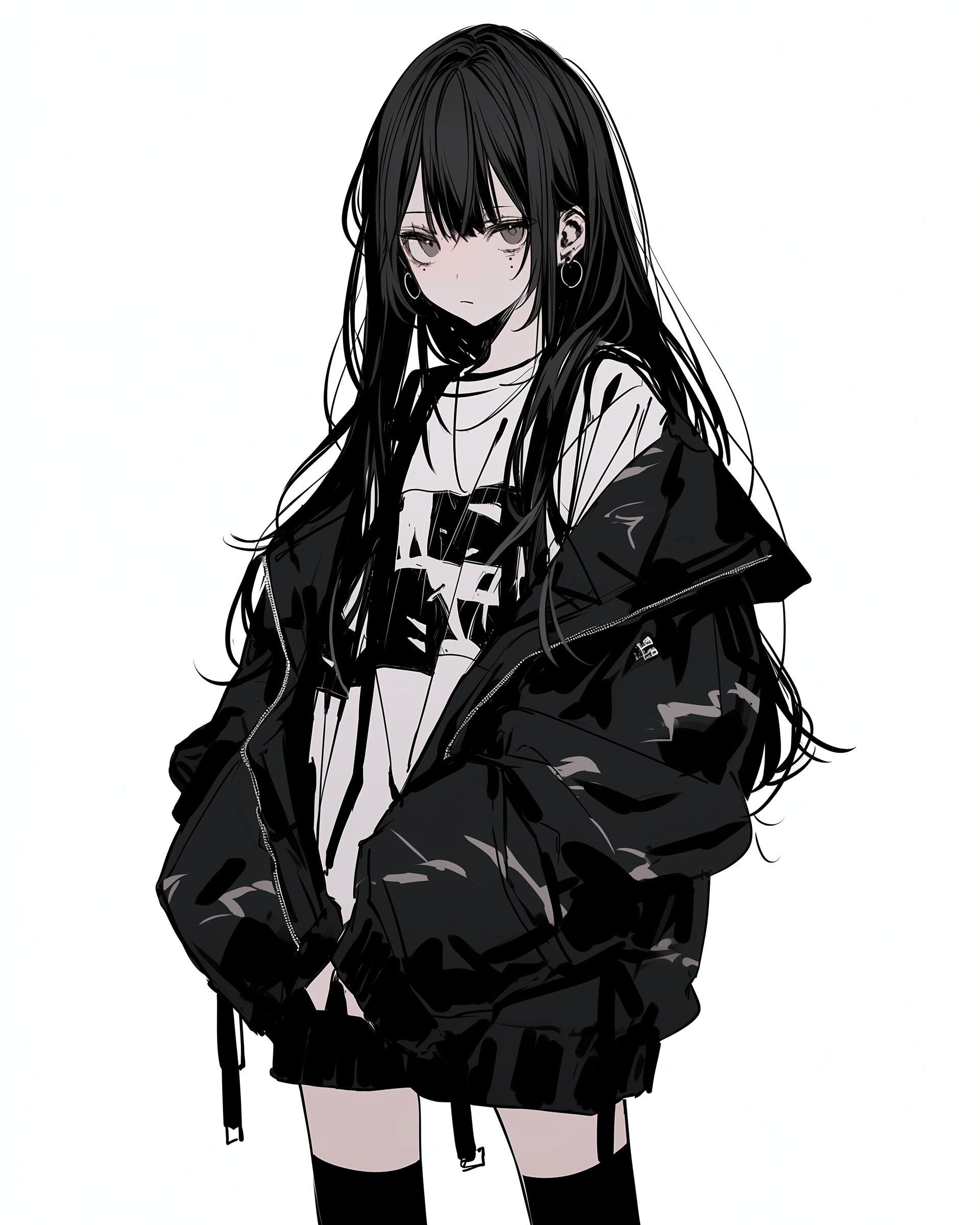 検索タグ:イラスト、ファッション、キャラクター、女性、女、女の子、女子、女の人、アニメ、漫画、マンガ、美人、美女、若い、かわいい、可愛い、カワイイ、人物、顔、美しい、綺麗、きれい、キレイ、アート、お洒落、挿絵、インスタ、Instagram、fashion、コピースペース、おしゃれ、オシャレ、秋、秋服、待ち合わせ、秋冬ファッション、冬服、ブラック、BLACK、黒、パーカー女子、白背景、かっこいい、クール、カッコイイ