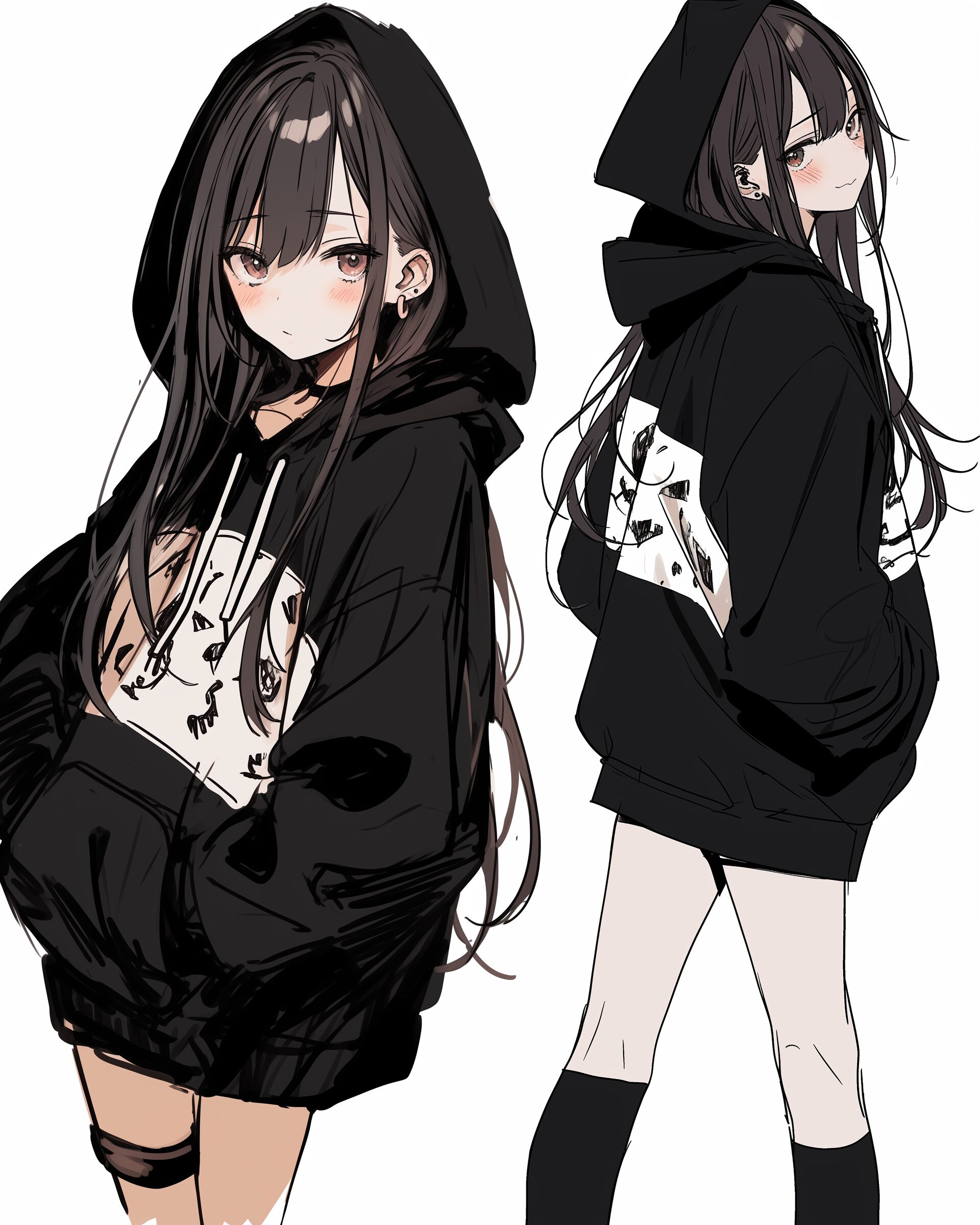 検索タグ:イラスト、ファッション、キャラクター、女性、女、女の子、女子、女の人、アニメ、漫画、マンガ、美人、美女、若い、かわいい、可愛い、カワイイ、人物、顔、美しい、綺麗、きれい、キレイ、アート、お洒落、挿絵、インスタ、Instagram、fashion、コピースペース、おしゃれ、オシャレ、秋、秋服、待ち合わせ、秋冬ファッション、冬服、ブラック、BLACK、黒、パーカー女子、白背景、かっこいい、クール、カッコイイ、後ろ姿