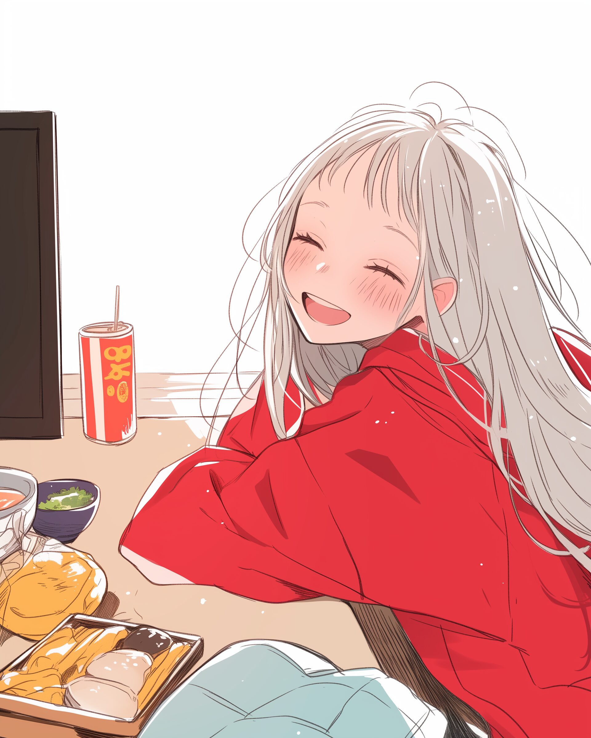 検索タグ:イラスト、ファッション、キャラクター、女性、女、女の子、女子、女の人、アニメ、漫画、マンガ、美人、美女、若い、かわいい、可愛い、カワイイ、人物、顔、美しい、綺麗、きれい、キレイ、アート、お洒落、挿絵、インスタ、Instagram、AI生成画像、fashion、コピースペース、おしゃれ、オシャレ、冬、こたつ、コタツ、部屋、室内、笑顔、銀髪