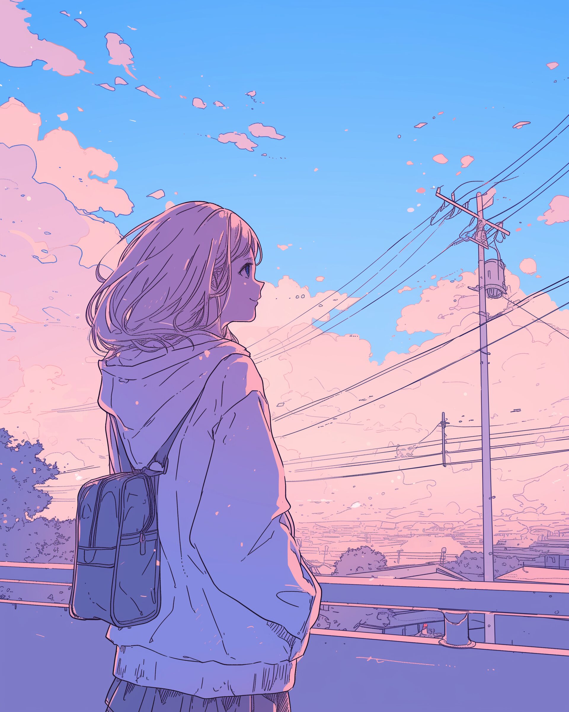 検索タグ:イラスト、ファッション、キャラクター、女性、女、女の子、女子、女の人、アニメ、漫画、マンガ、美人、美女、若い、かわいい、可愛い、カワイイ、人物、顔、美しい、綺麗、きれい、キレイ、アート、洋服、お洒落、パーカー女子、パーカー、黄昏、たそがれ、女子高生、JK、夕方、夕暮れ