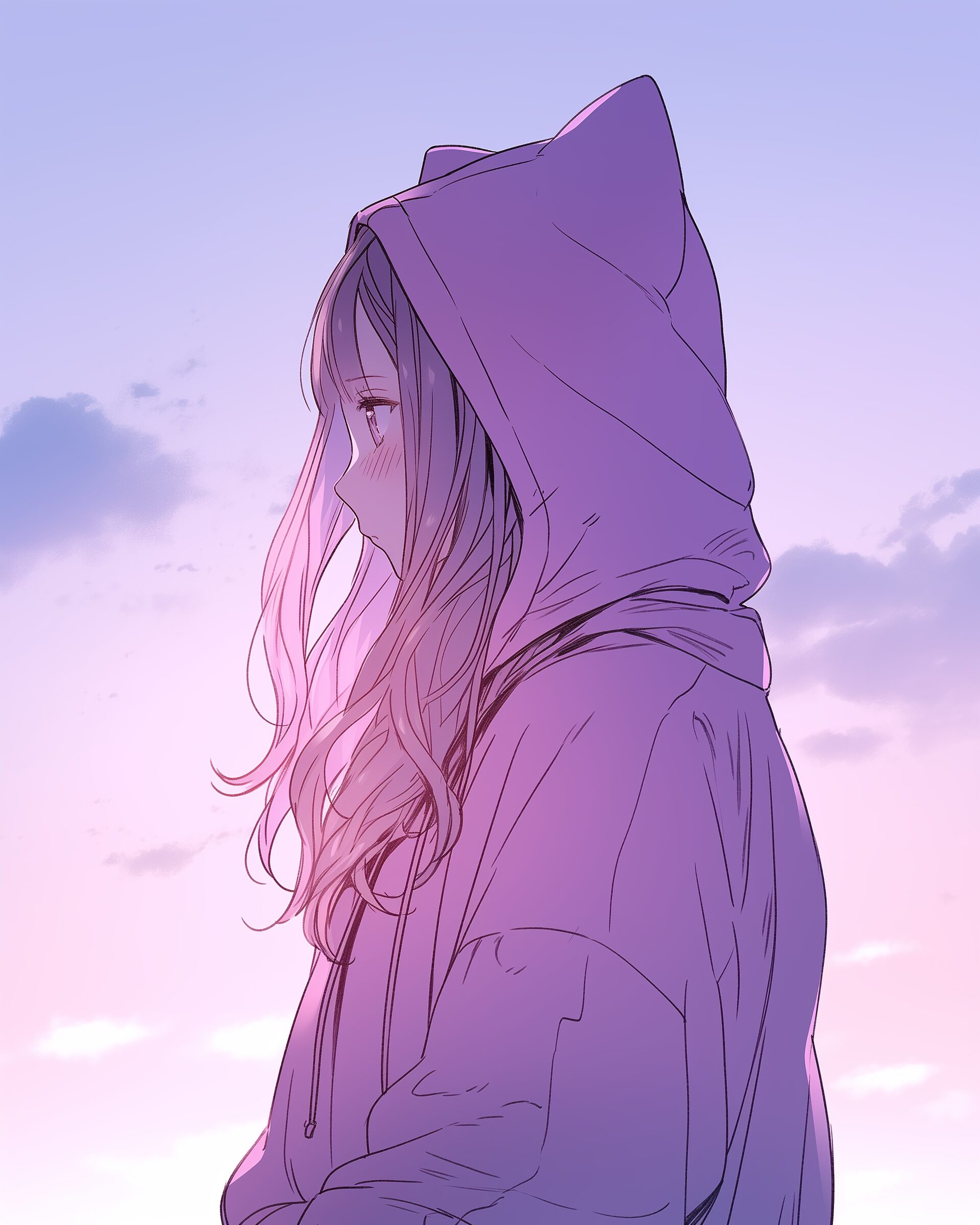 検索タグ:イラスト、ファッション、キャラクター、女性、女、女の子、女子、女の人、アニメ、漫画、マンガ、美人、美女、若い、かわいい、可愛い、カワイイ、人物、顔、美しい、綺麗、きれい、キレイ、アート、洋服、お洒落、パーカー女子、パーカー、黄昏、たそがれ、女子高生、JK、夕方、夕暮れ