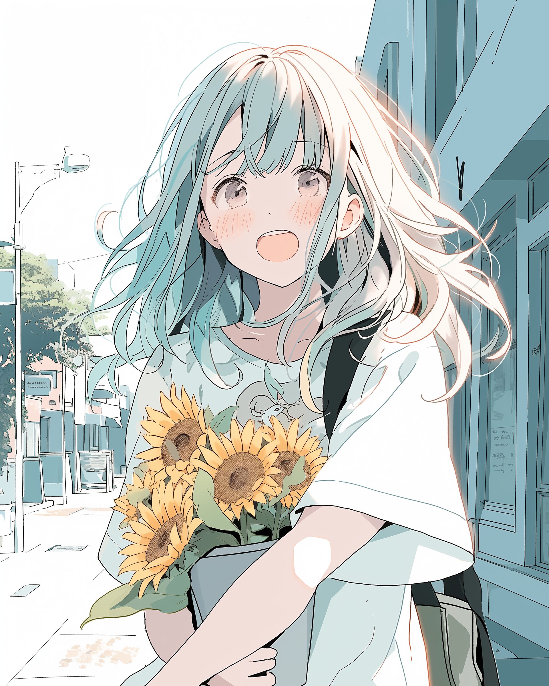検索タグ:イラスト、ファッション、キャラクター、女性、女、女の子、女子、女の人、アニメ、漫画、マンガ、美人、美女、若い、かわいい、可愛い、カワイイ、人物、顔、美しい、綺麗、きれい、キレイ、アート、お洒落、女子高生、JK、挿絵、夏、春、パステルカラー、春服、インスタ、Instagram、夏、夏服、summer、fashion、サムネイル、アイキャッチ、コピースペース、ひまわり、向日葵、ヒマワリ、花、花束
