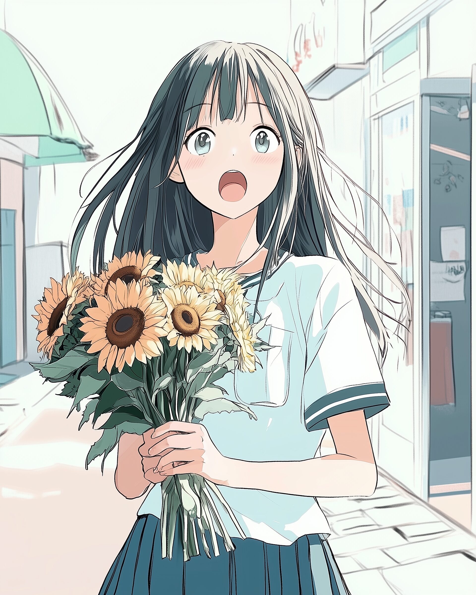 検索タグ:イラスト、ファッション、キャラクター、女性、女、女の子、女子、女の人、アニメ、漫画、マンガ、美人、美女、若い、かわいい、可愛い、カワイイ、人物、顔、美しい、綺麗、きれい、キレイ、アート、お洒落、女子高生、JK、挿絵、夏、春、パステルカラー、春服、インスタ、Instagram、夏、夏服、summer、fashion、サムネイル、アイキャッチ、コピースペース、ひまわり、向日葵、ヒマワリ、花、花束