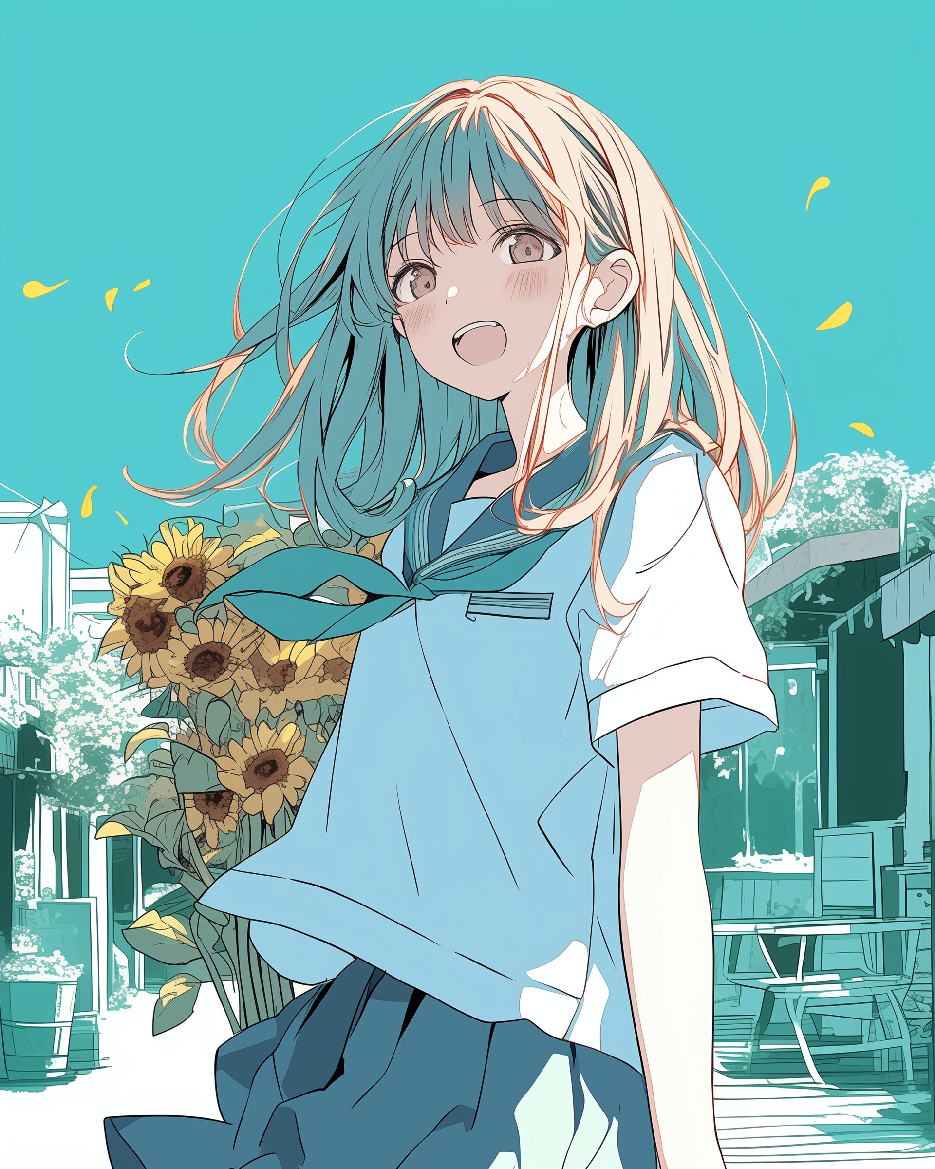 検索タグ:イラスト、ファッション、キャラクター、女性、女、女の子、女子、女の人、アニメ、漫画、マンガ、美人、美女、若い、かわいい、可愛い、カワイイ、人物、顔、美しい、綺麗、きれい、キレイ、アート、お洒落、女子高生、JK、挿絵、夏、春、パステルカラー、春服、インスタ、Instagram、夏、夏服、summer、fashion、サムネイル、アイキャッチ、コピースペース、ひまわり、向日葵、ヒマワリ、花、花束