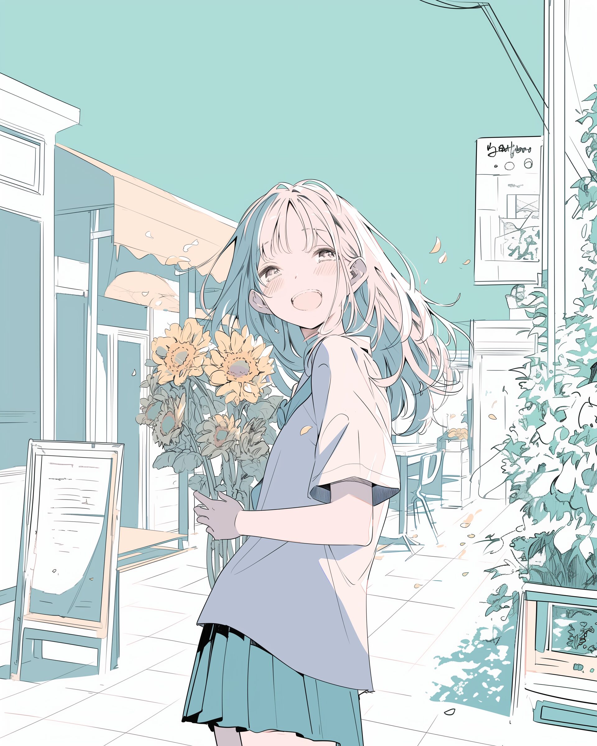 検索タグ:イラスト、ファッション、キャラクター、女性、女、女の子、女子、女の人、アニメ、漫画、マンガ、美人、美女、若い、かわいい、可愛い、カワイイ、人物、顔、美しい、綺麗、きれい、キレイ、アート、お洒落、女子高生、JK、挿絵、夏、春、パステルカラー、春服、インスタ、Instagram、夏、夏服、summer、fashion、サムネイル、アイキャッチ、コピースペース、ひまわり、向日葵、ヒマワリ、花、花束