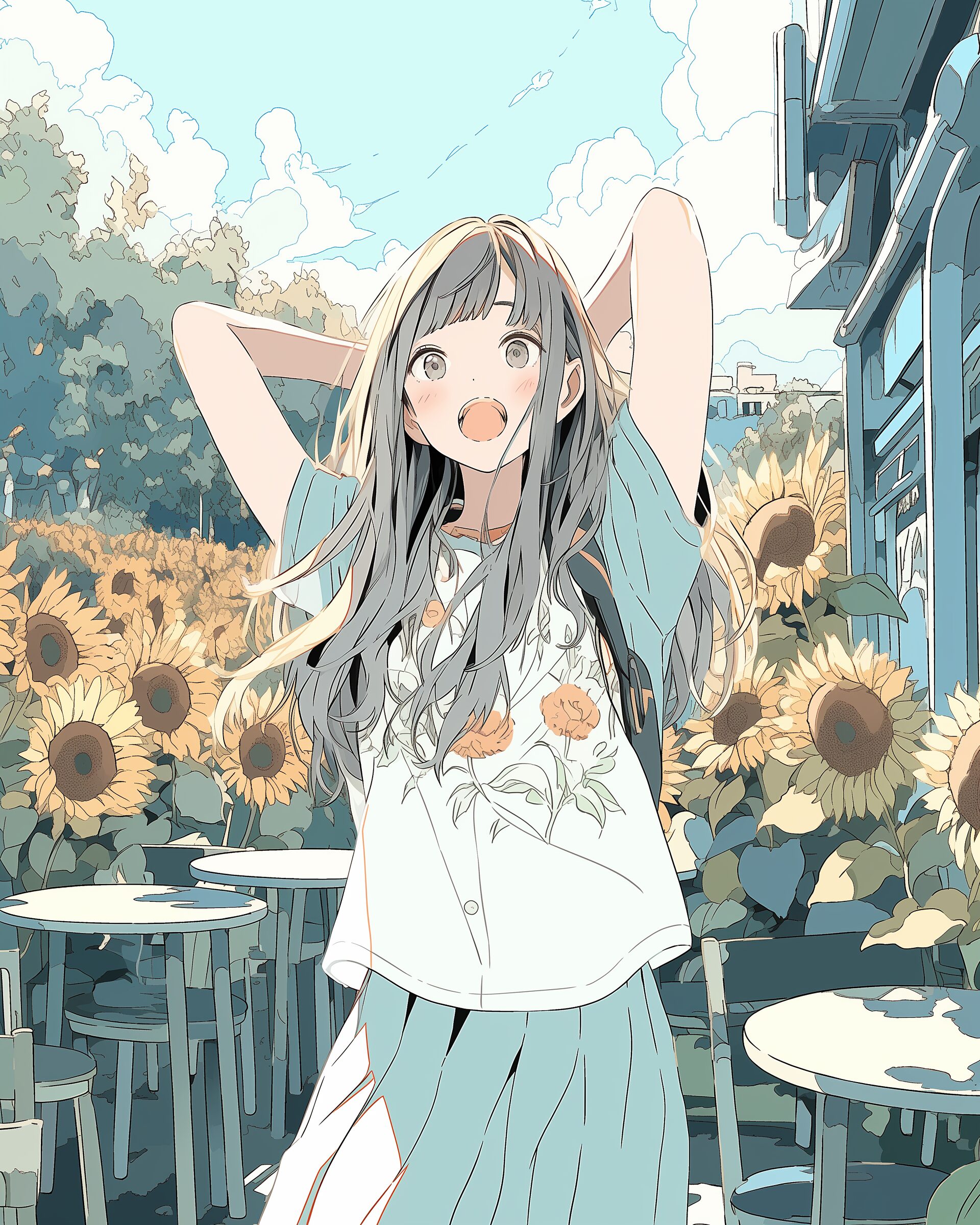 検索タグ:イラスト、ファッション、キャラクター、女性、女、女の子、女子、女の人、アニメ、漫画、マンガ、美人、美女、若い、かわいい、可愛い、カワイイ、人物、顔、美しい、綺麗、きれい、キレイ、アート、お洒落、女子高生、JK、挿絵、夏、春、パステルカラー、春服、インスタ、Instagram、夏、夏服、summer、fashion、サムネイル、アイキャッチ、コピースペース、ひまわり、向日葵、ヒマワリ、花、花束