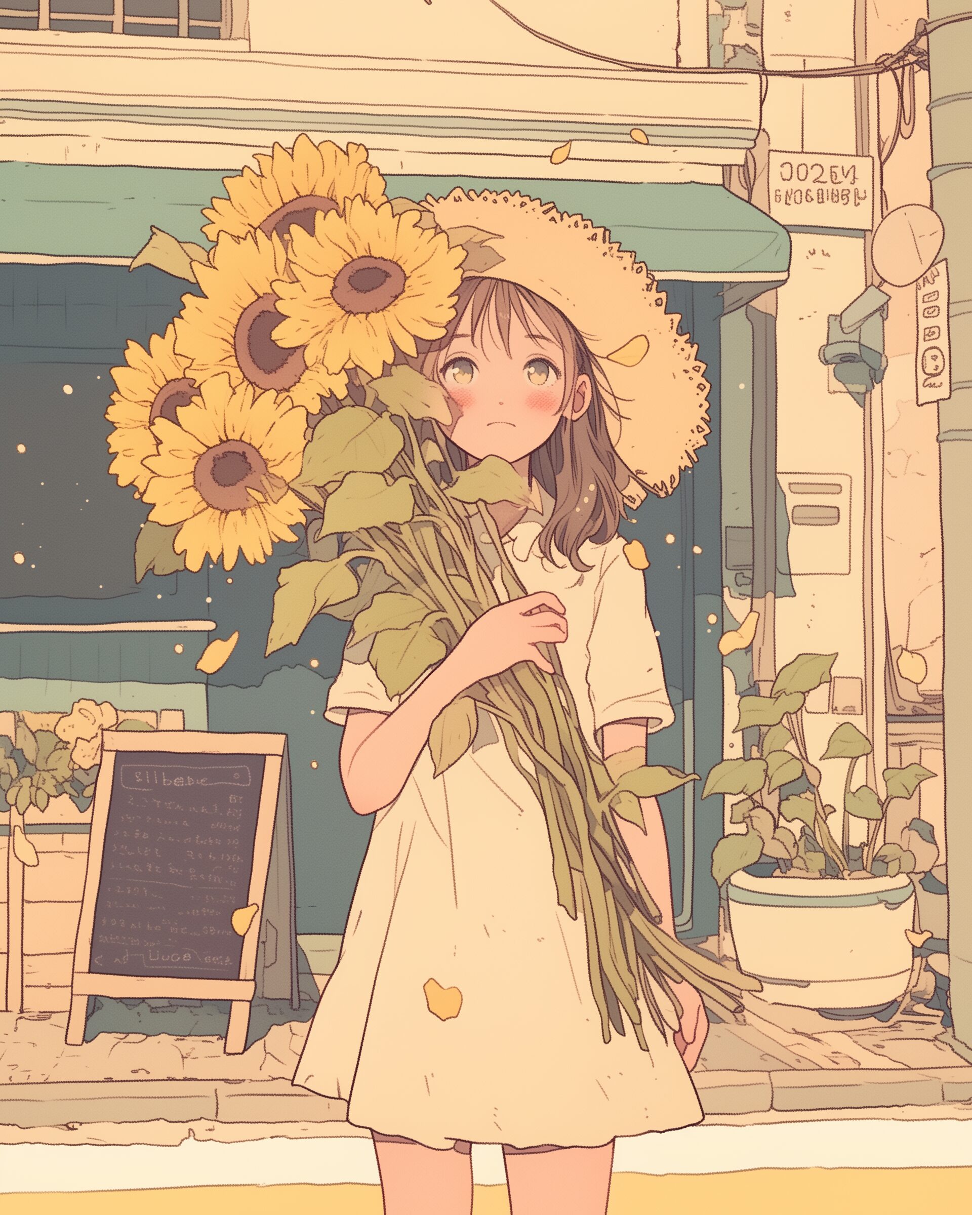 検索タグ:イラスト、ファッション、キャラクター、女性、女、女の子、女子、女の人、アニメ、漫画、マンガ、美人、美女、若い、かわいい、可愛い、カワイイ、人物、顔、美しい、綺麗、きれい、キレイ、アート、お洒落、女子高生、JK、挿絵、夏、春、パステルカラー、春服、インスタ、Instagram、夏、夏服、summer、fashion、サムネイル、アイキャッチ、コピースペース、ひまわり、向日葵、ヒマワリ、花、花束