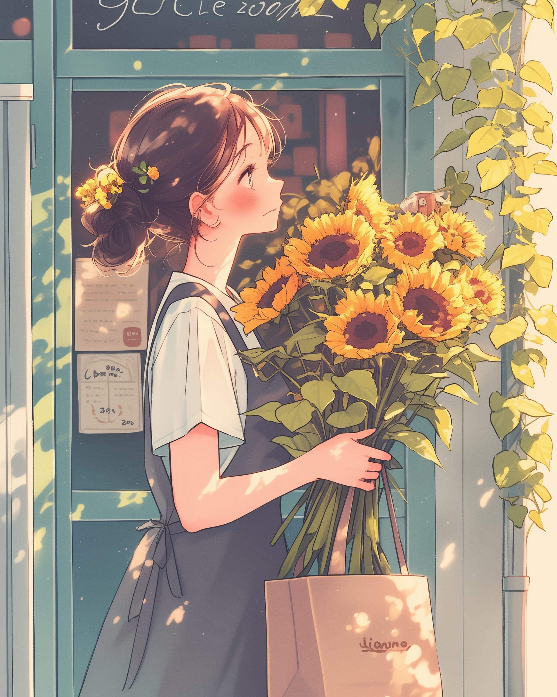 検索タグ:イラスト、ファッション、キャラクター、女性、女、女の子、女子、女の人、アニメ、漫画、マンガ、美人、美女、若い、かわいい、可愛い、カワイイ、人物、顔、美しい、綺麗、きれい、キレイ、アート、お洒落、女子高生、JK、挿絵、夏、春、パステルカラー、春服、インスタ、Instagram、夏、夏服、summer、fashion、サムネイル、アイキャッチ、コピースペース、ひまわり、向日葵、ヒマワリ、花、花束