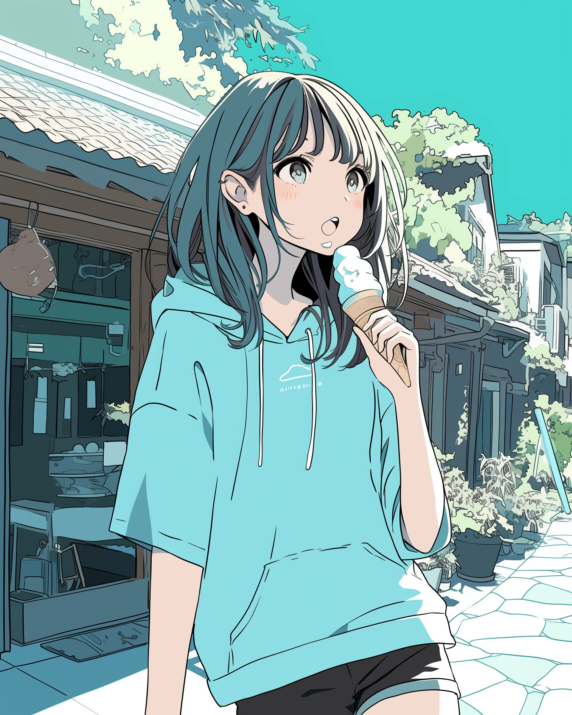 検索タグ:イラスト、ファッション、キャラクター、女性、女、女の子、女子、女の人、アニメ、漫画、マンガ、美人、美女、若い、かわいい、可愛い、カワイイ、人物、顔、美しい、綺麗、きれい、キレイ、アート、お洒落、女子高生、JK、挿絵、夏、春、パステルカラー、春服、インスタ、Instagram、夏、夏服、summer、fashion、アイスクリーム、ソフトクリーム、アイス、青、ブルー、Blue