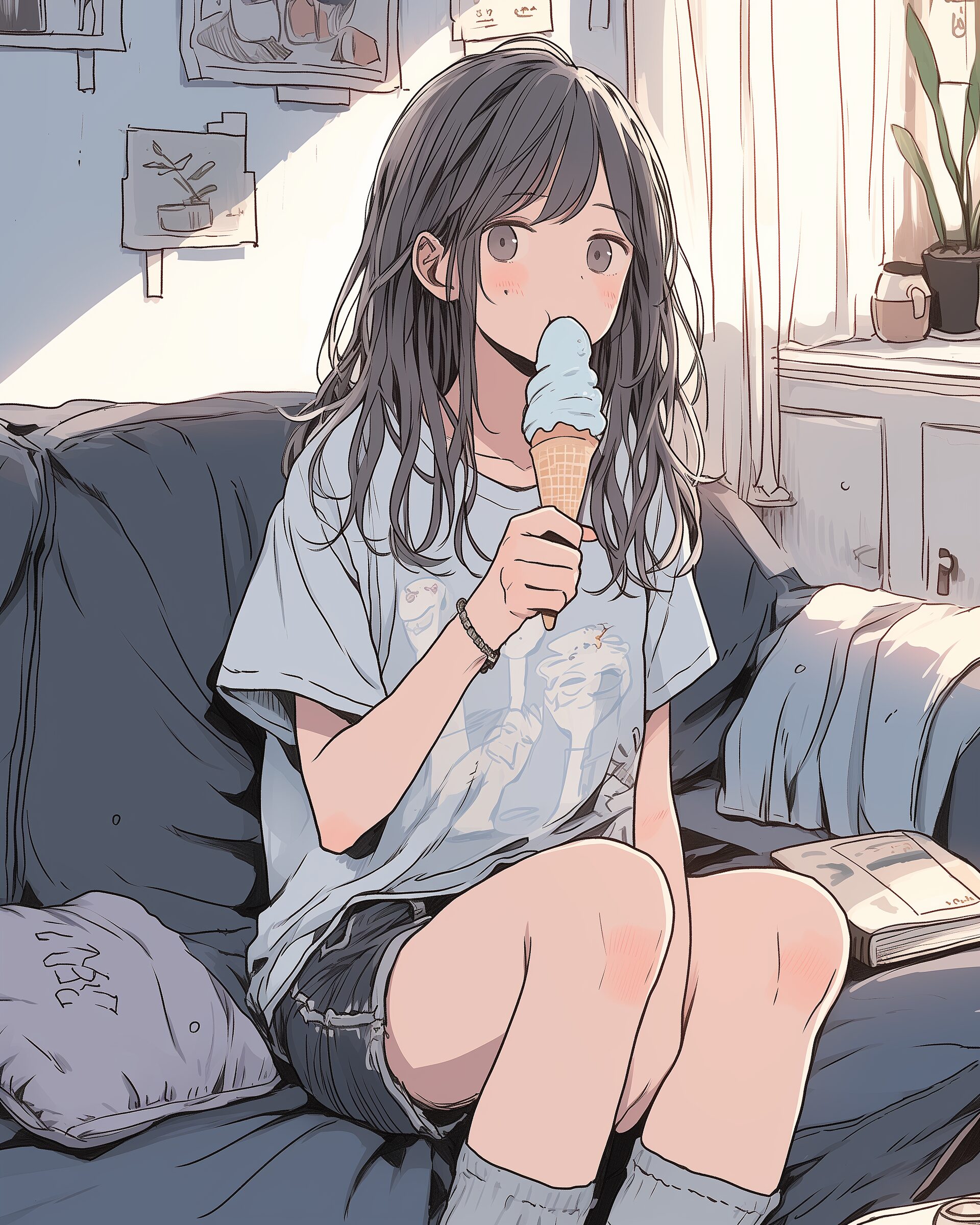 検索タグ:イラスト、ファッション、キャラクター、女性、女、女の子、女子、女の人、アニメ、漫画、マンガ、美人、美女、若い、かわいい、可愛い、カワイイ、人物、顔、美しい、綺麗、きれい、キレイ、アート、お洒落、女子高生、JK、挿絵、夏、春、パステルカラー、春服、インスタ、Instagram、夏、夏服、summer、fashion、アイスクリーム、ソフトクリーム、アイス、青、ブルー、Blue