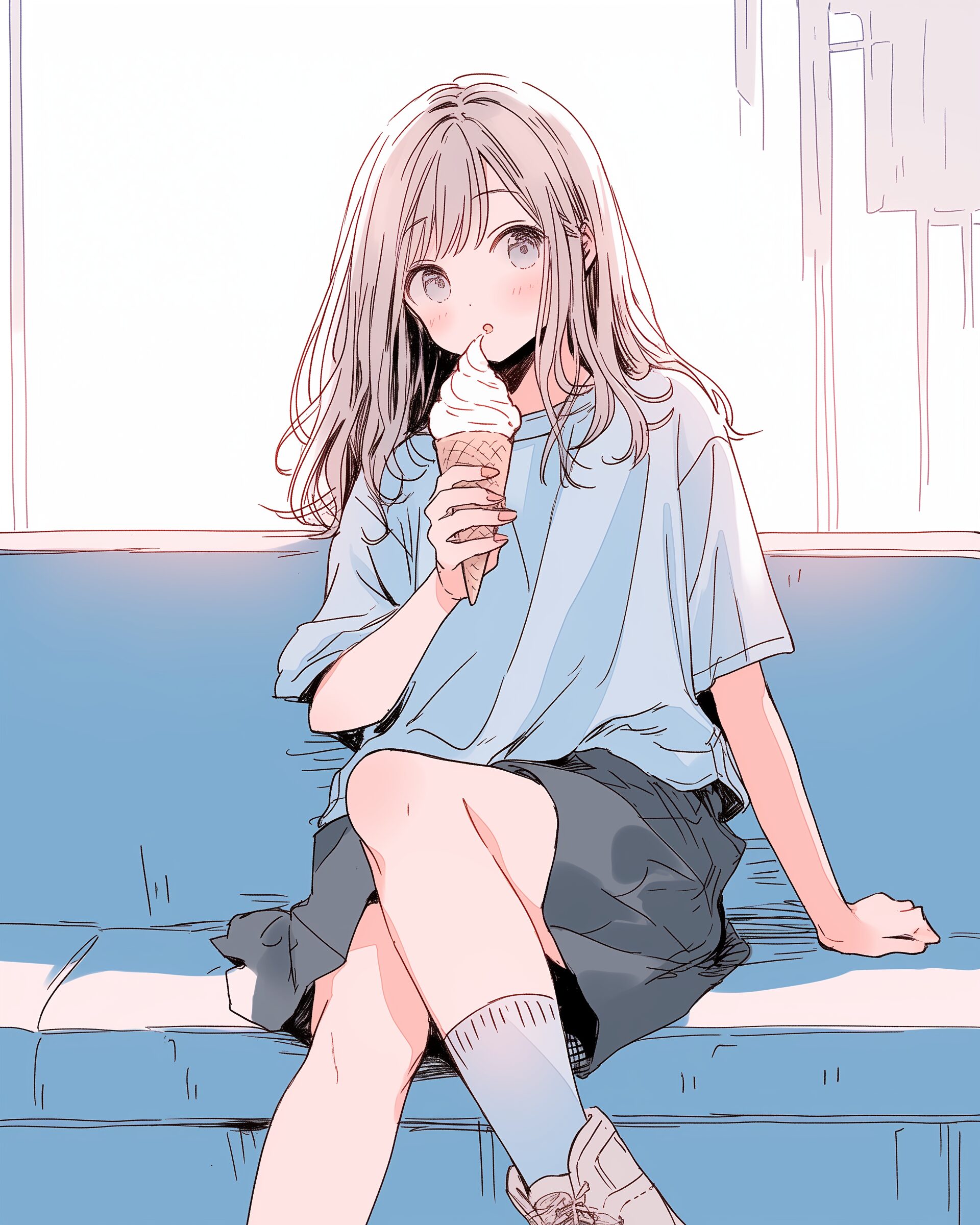 検索タグ:イラスト、ファッション、キャラクター、女性、女、女の子、女子、女の人、アニメ、漫画、マンガ、美人、美女、若い、かわいい、可愛い、カワイイ、人物、顔、美しい、綺麗、きれい、キレイ、アート、お洒落、女子高生、JK、挿絵、夏、春、パステルカラー、春服、インスタ、Instagram、夏、夏服、summer、fashion、アイスクリーム、ソフトクリーム、アイス、青、ブルー、Blue