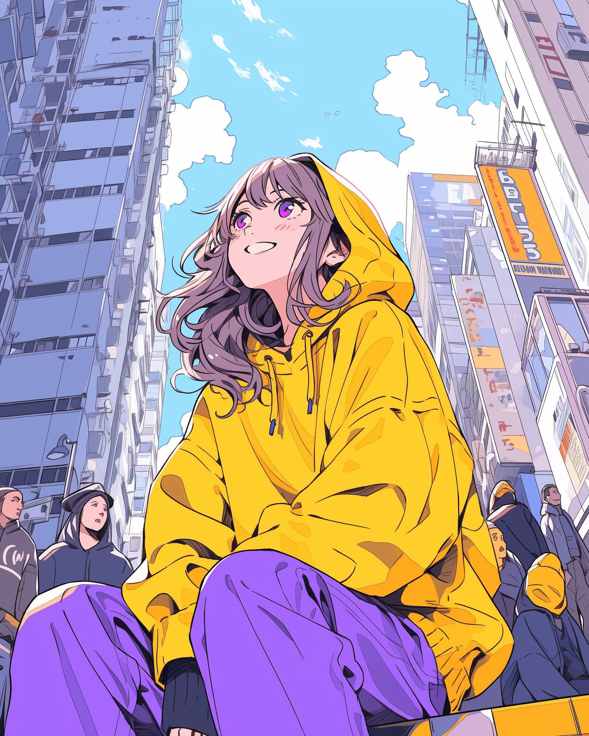 検索タグ:イラスト、ファッション、キャラクター、女性、女、女の子、女子、女の人、アニメ、漫画、マンガ、美人、美女、若い、かわいい、可愛い、カワイイ、萌え、萌え系、萌えキャラ、人物、顔、美しい、綺麗、きれい、キレイ、芸術、アート、顔、冬服、冬、洋服、お洒落、おしゃれ、オシャレ、コーデ、コーディネート、パーカー、パーカー女子、紫、パープル、イエロー、黄色