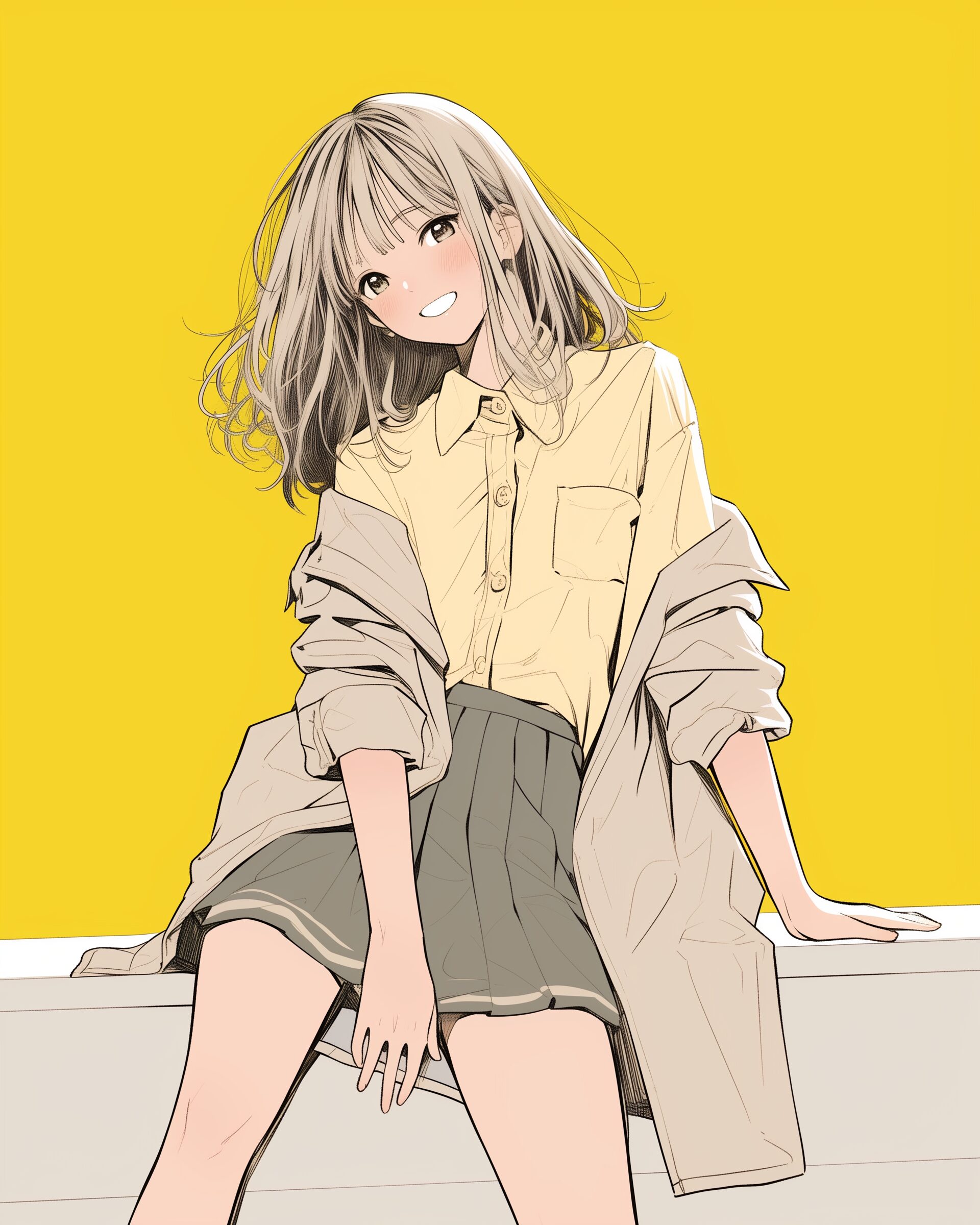 検索タグ:イラスト、ファッション、キャラクター、女性、女、女の子、女子、女の人、アニメ、漫画、マンガ、美人、美女、若い、かわいい、可愛い、カワイイ、人物、顔、美しい、綺麗、きれい、キレイ、アート、お洒落、女子高生、JK、挿絵、夏、春、パステルカラー、春服、インスタ、Instagram、夏、夏服、summer、fashion、イエロー、yellow