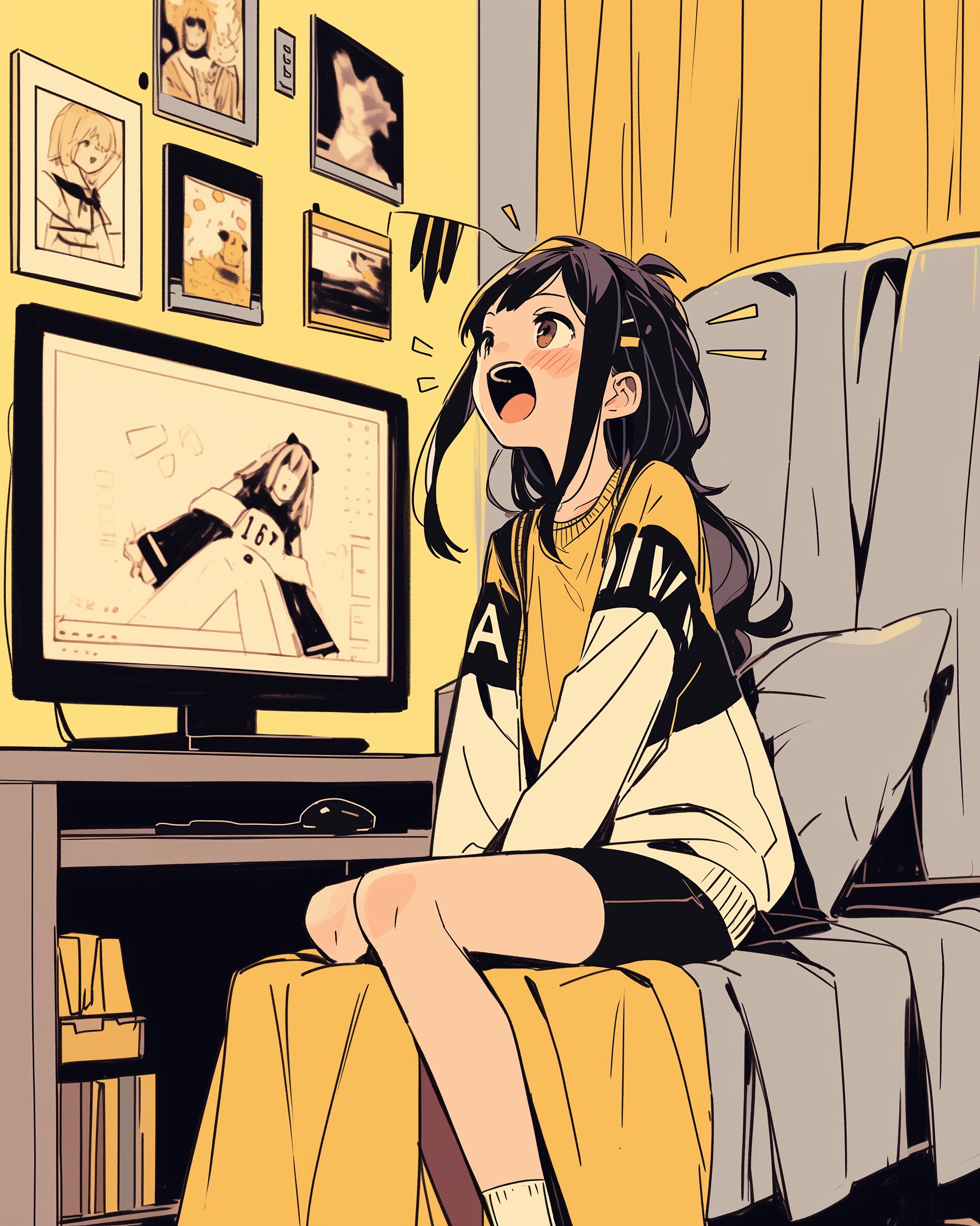 検索タグ:イラスト、ファッション、キャラクター、女性、女、女の子、女子、女の人、アニメ、漫画、マンガ、美人、美女、若い、かわいい、可愛い、カワイイ、人物、顔、美しい、綺麗、きれい、キレイ、アート、お洒落、女子高生、JK、挿絵、夏、春、パステルカラー、トップス、春服、インスタ、Instagram、、黄色、イエロー、yellow、叫ぶ