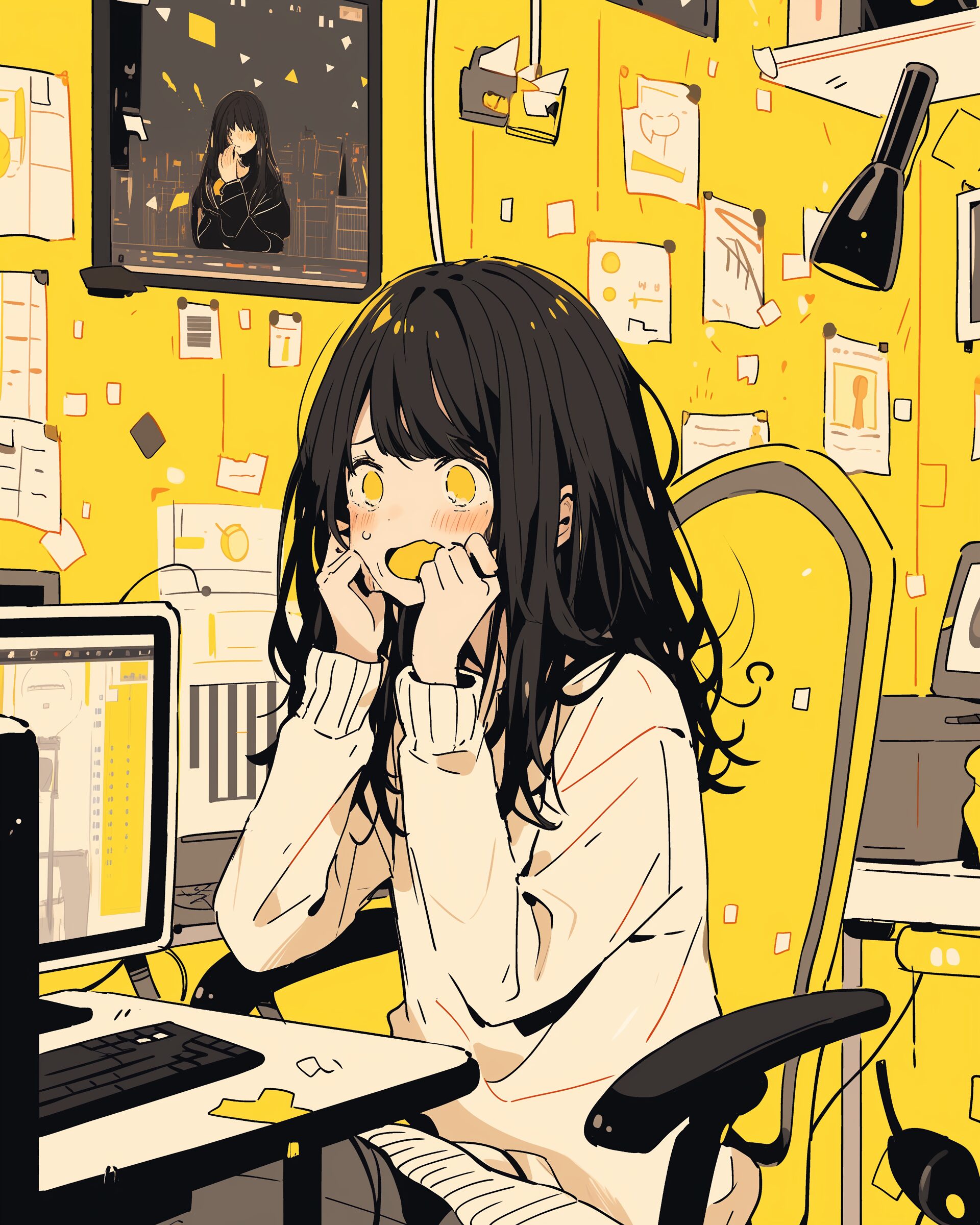 検索タグ:イラスト、ファッション、キャラクター、女性、女、女の子、女子、女の人、アニメ、漫画、マンガ、美人、美女、若い、かわいい、可愛い、カワイイ、人物、顔、美しい、綺麗、きれい、キレイ、アート、お洒落、女子高生、JK、挿絵、夏、春、パステルカラー、トップス、春服、インスタ、Instagram、、黄色、イエロー、yellow、驚き、驚く
