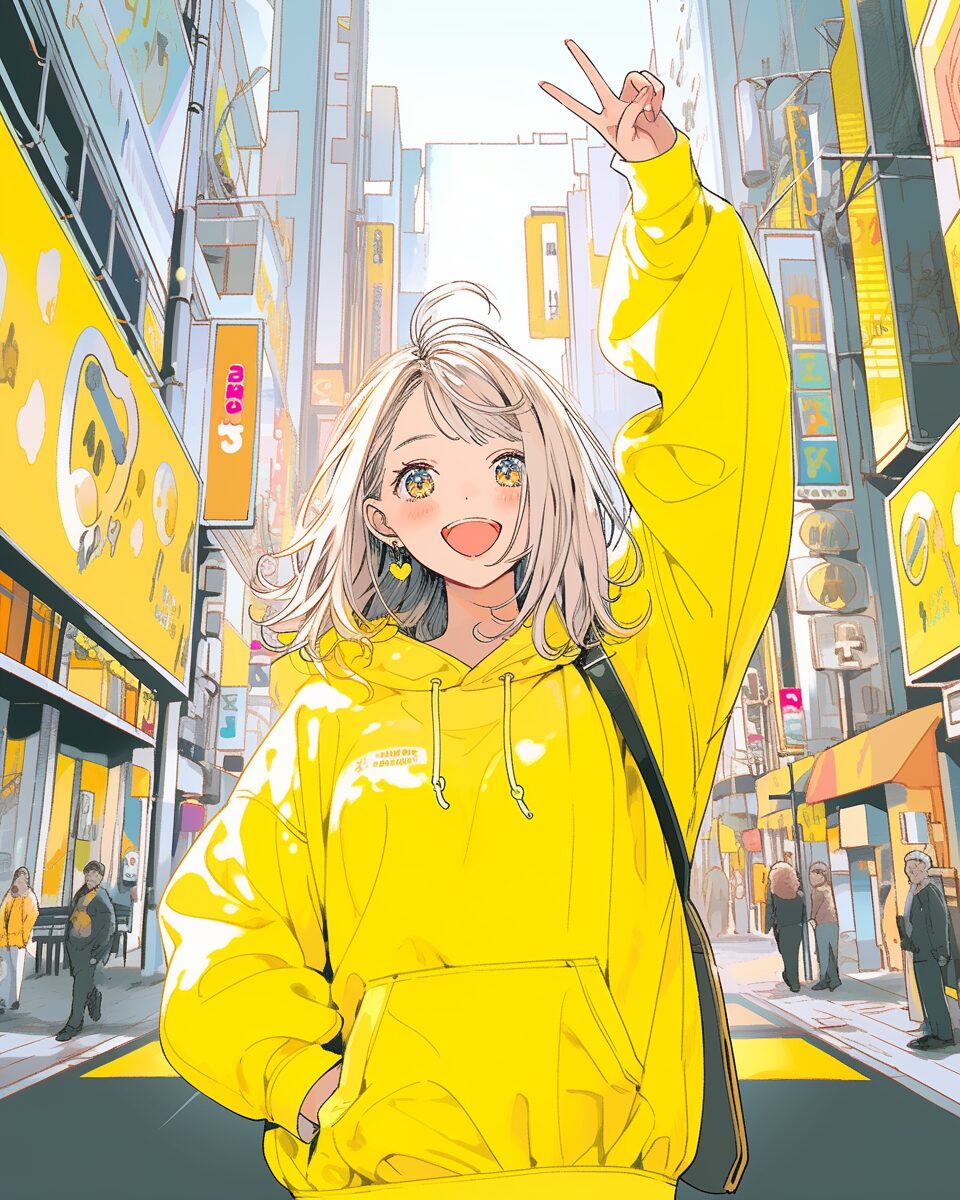 検索タグ:イラスト、ファッション、キャラクター、女性、女、女の子、女子、女の人、アニメ、漫画、マンガ、美人、美女、若い、かわいい、可愛い、カワイイ、人物、顔、美しい、綺麗、きれい、キレイ、アート、お洒落、女子高生、JK、挿絵、夏、春、パステルカラー、春服、インスタ、Instagram、fashion、サムネイル、アイキャッチ、コピースペース、ピース、イエロー、yellow、黄色