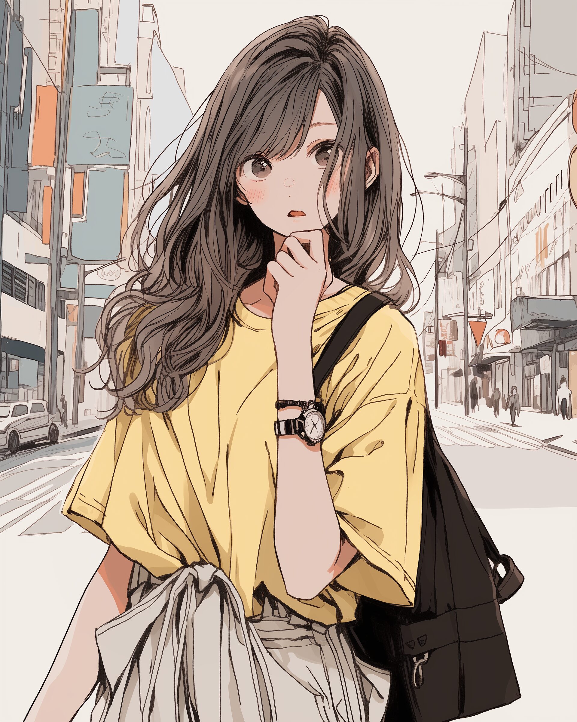 検索タグ:イラスト、ファッション、キャラクター、女性、女、女の子、女子、女の人、アニメ、漫画、マンガ、美人、美女、若い、かわいい、可愛い、カワイイ、人物、顔、美しい、綺麗、きれい、キレイ、アート、お洒落、女子高生、JK、挿絵、夏、春、パステルカラー、春服、インスタ、Instagram、夏、夏服、summer、fashion、イエロー、yellow、黄色、ベージュ、beige
