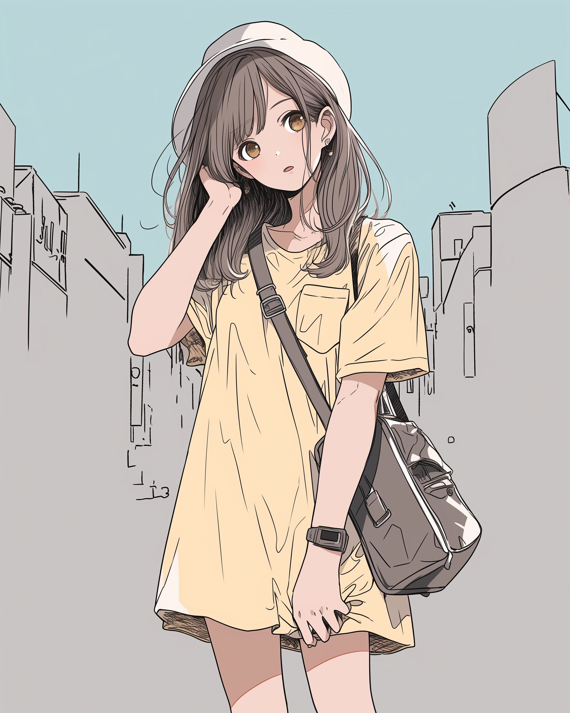 検索タグ:イラスト、ファッション、キャラクター、女性、女、女の子、女子、女の人、アニメ、漫画、マンガ、美人、美女、若い、かわいい、可愛い、カワイイ、人物、顔、美しい、綺麗、きれい、キレイ、アート、お洒落、女子高生、JK、挿絵、夏、春、パステルカラー、春服、インスタ、Instagram、夏、夏服、summer、fashion、イエロー、yellow、黄色、ベージュ、beige