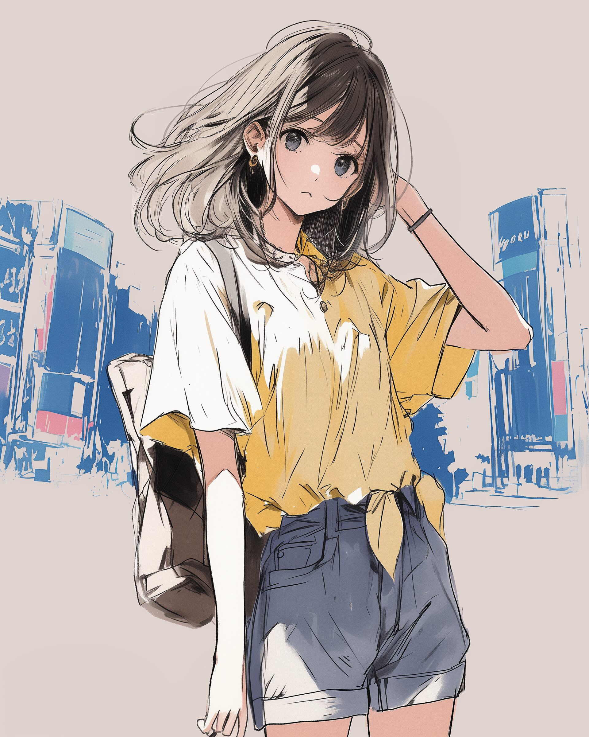 検索タグ:イラスト、ファッション、キャラクター、女性、女、女の子、女子、女の人、アニメ、漫画、マンガ、美人、美女、若い、かわいい、可愛い、カワイイ、人物、顔、美しい、綺麗、きれい、キレイ、アート、お洒落、女子高生、JK、挿絵、夏、春、パステルカラー、春服、インスタ、Instagram、夏、夏服、summer、fashion、イエロー、yellow、黄色、ベージュ、beige