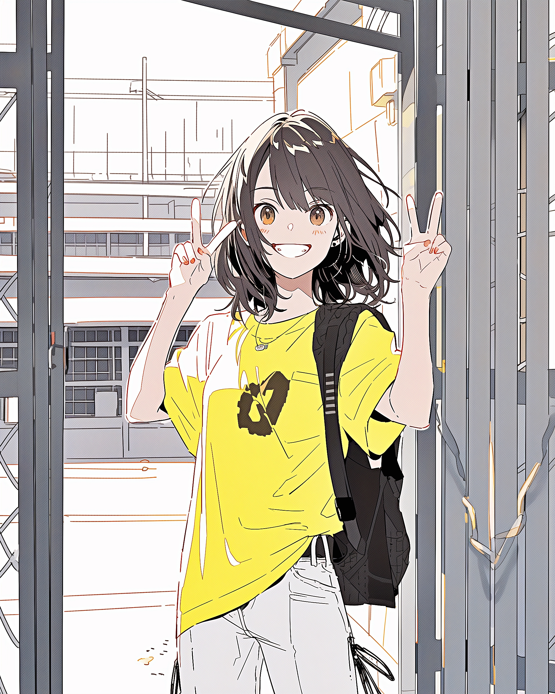 検索タグ:イラスト、ファッション、キャラクター、女性、女、女の子、女子、女の人、アニメ、漫画、マンガ、美人、美女、若い、かわいい、可愛い、カワイイ、人物、顔、美しい、綺麗、きれい、キレイ、アート、お洒落、女子高生、JK、挿絵、夏、春、パステルカラー、春服、インスタ、Instagram、夏、夏服、summer、fashion、サムネイル、アイキャッチ、コピースペース、イエロー、黄色、yellow、Tシャツ