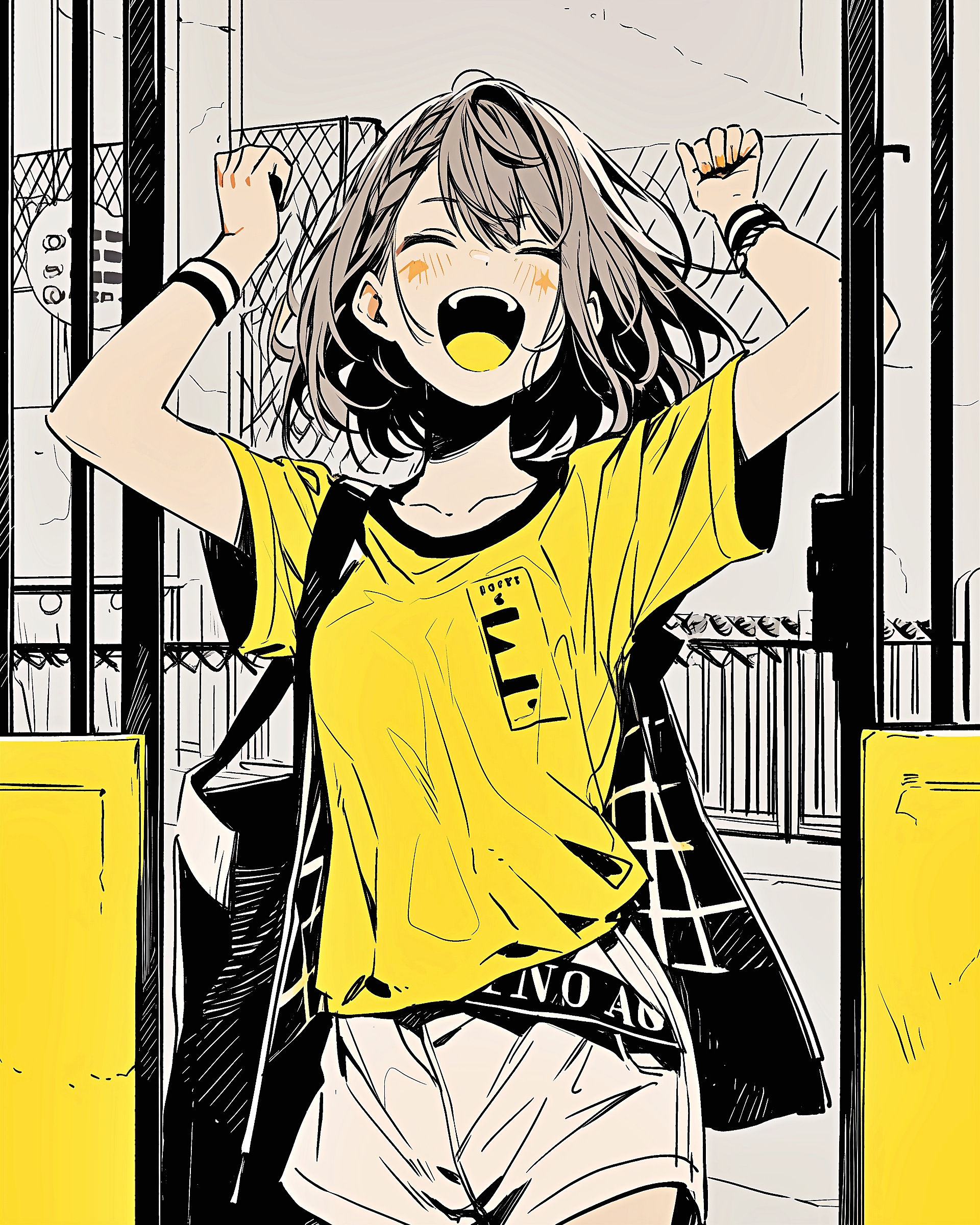 検索タグ:イラスト、ファッション、キャラクター、女性、女、女の子、女子、女の人、アニメ、漫画、マンガ、美人、美女、若い、かわいい、可愛い、カワイイ、人物、顔、美しい、綺麗、きれい、キレイ、アート、お洒落、女子高生、JK、挿絵、夏、春、パステルカラー、春服、インスタ、Instagram、夏、夏服、summer、fashion、サムネイル、アイキャッチ、コピースペース、イエロー、黄色、yellow、Tシャツ