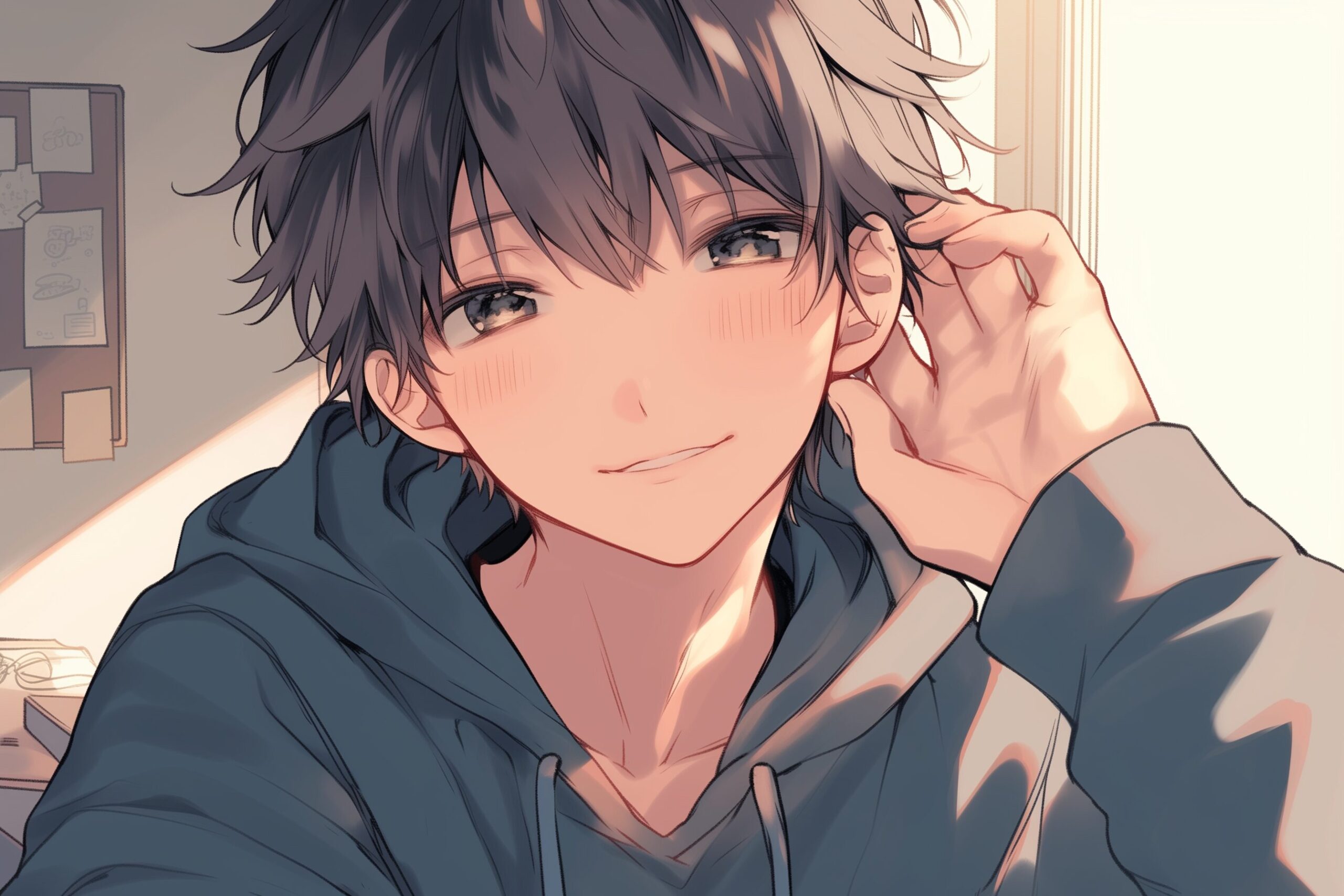 検索タグ:イラスト、キャラクター、男子、男性、男、男の人、アニメ、漫画、マンガ、若い、人物、顔、美しい、綺麗、きれい、キレイ、アート、お洒落、挿絵、インスタ、Instagram、AI生成画像、コピースペース、イケメン、男前、爽やか、さわやか、微笑み、微笑む、笑顔、かっこいい、カッコいい、カッコイイ、パーカー男子、パーカー