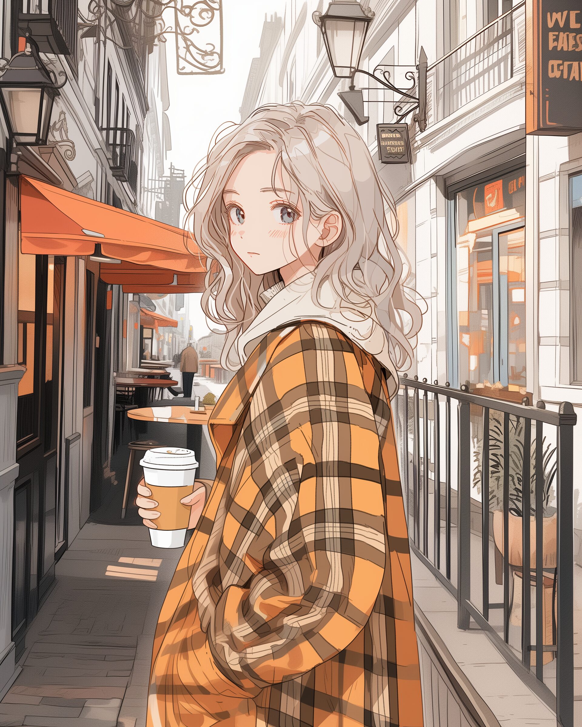 検索タグ:イラスト、ファッション、キャラクター、女性、女、女の子、女子、女の人、アニメ、漫画、マンガ、美人、美女、若い、かわいい、可愛い、カワイイ、人物、顔、美しい、綺麗、きれい、キレイ、アート、お洒落、挿絵、インスタ、Instagram、AI生成画像、fashion、コピースペース、おしゃれ、オシャレ、秋、秋服、冬服、コート、チェック柄